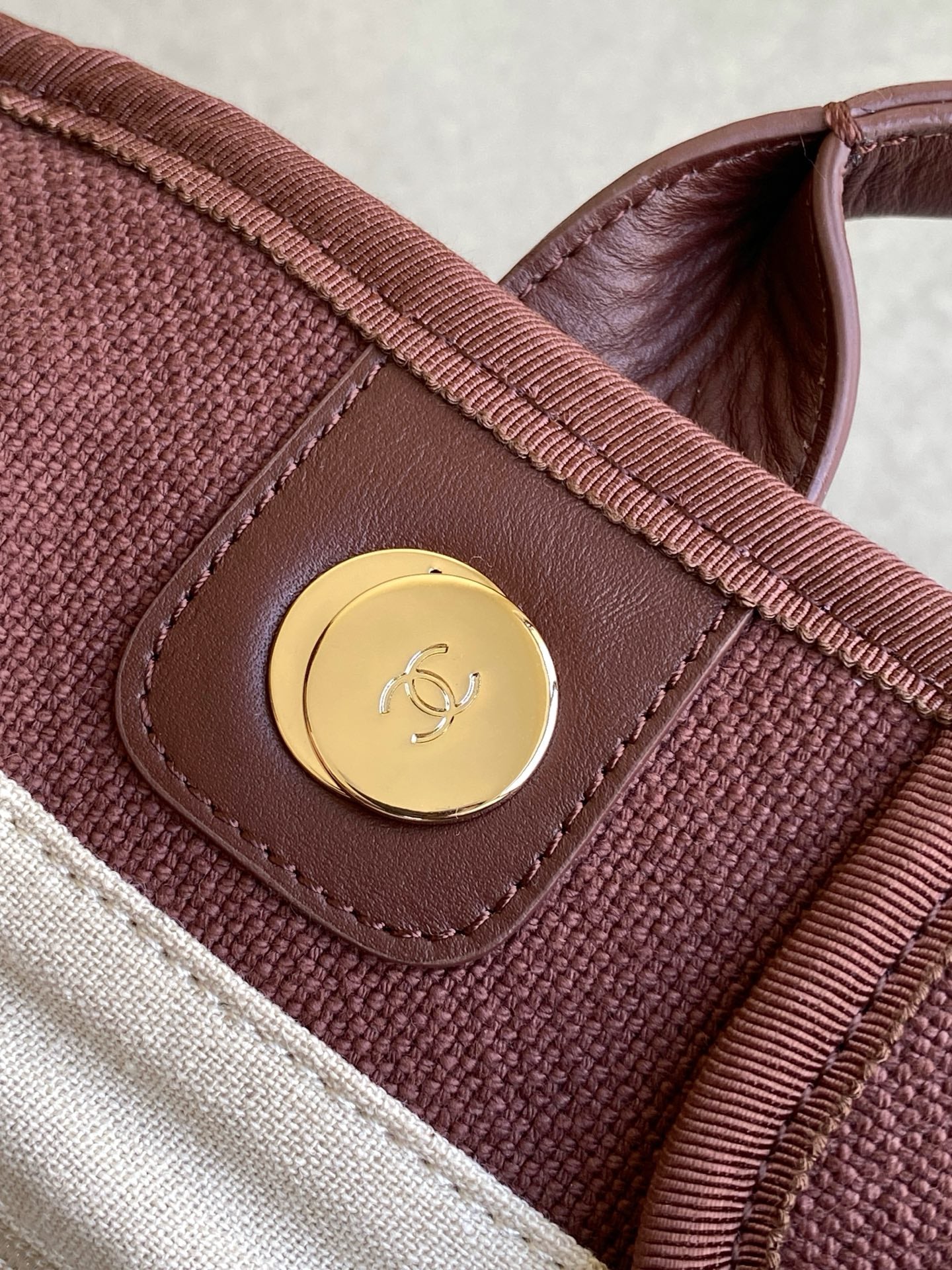 CHANEL 25S TOTE BAG 33 IN DARK RED CANVAS