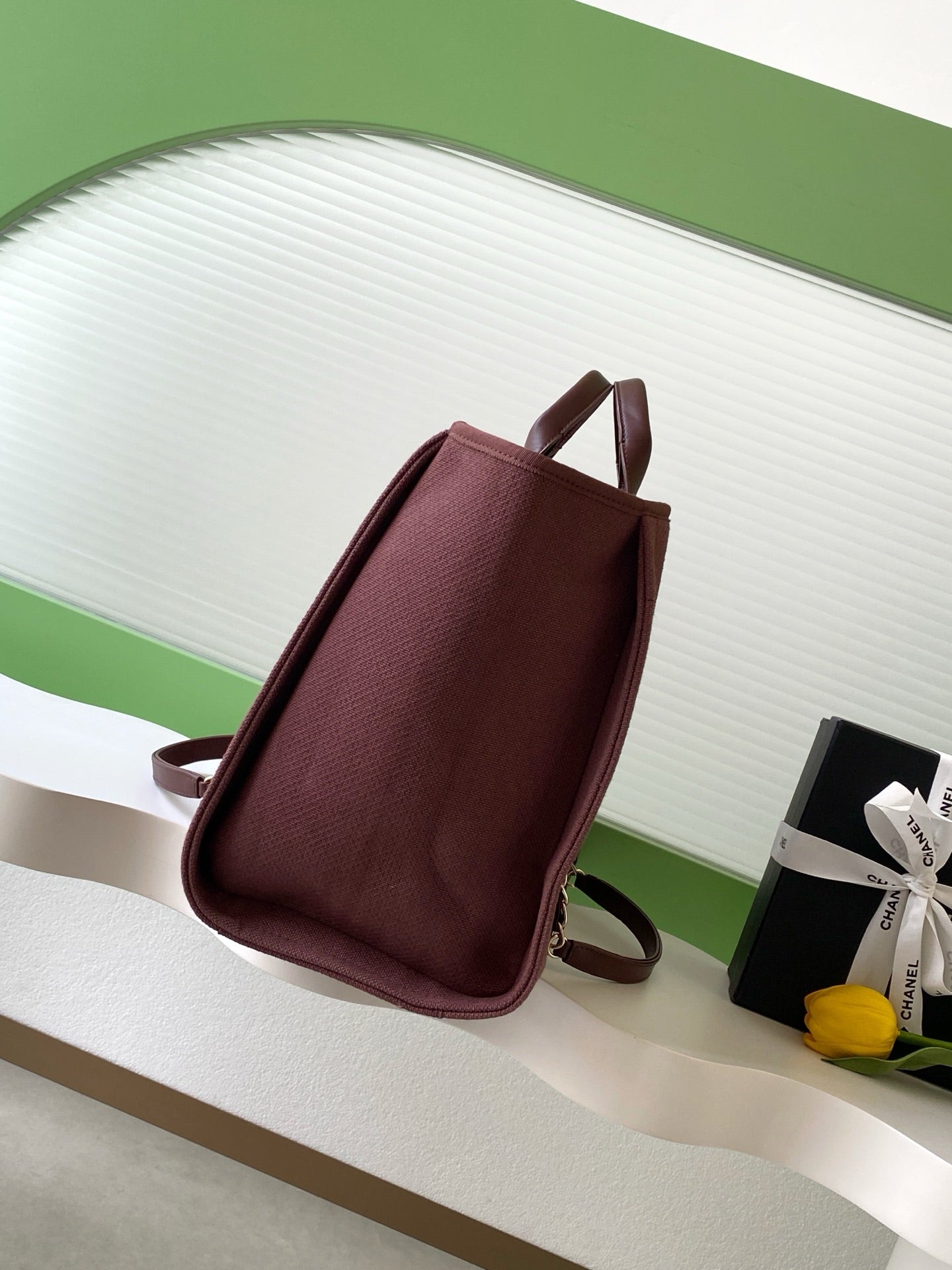 CHANEL 25S TOTE BAG 38 IN DARK RED CANVAS