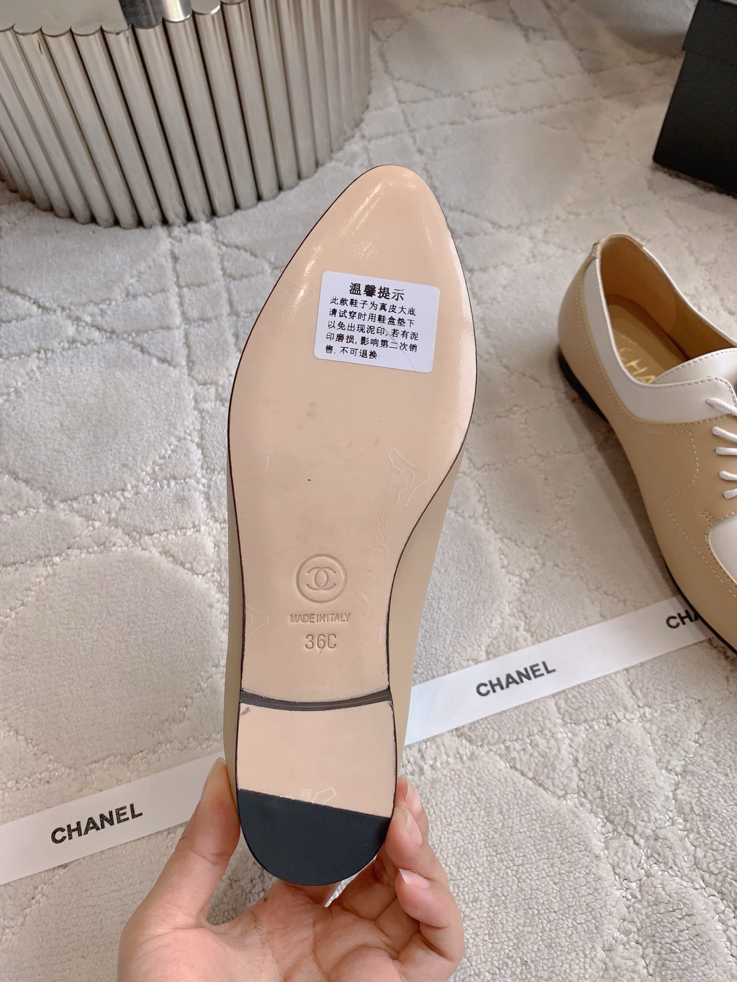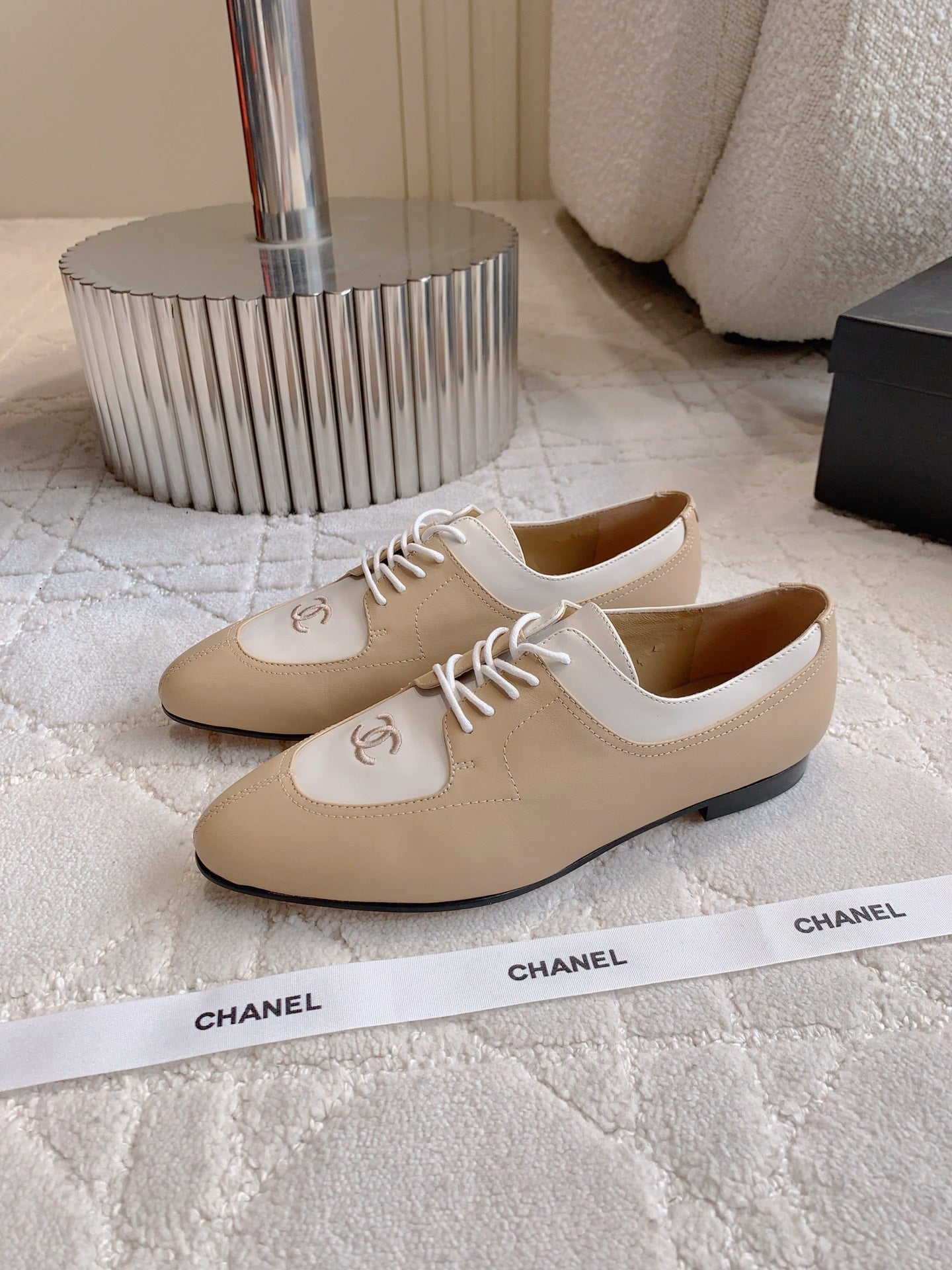 CHANEL 25S TWO TONE LACE UP IN BEIGE CALFSKIN