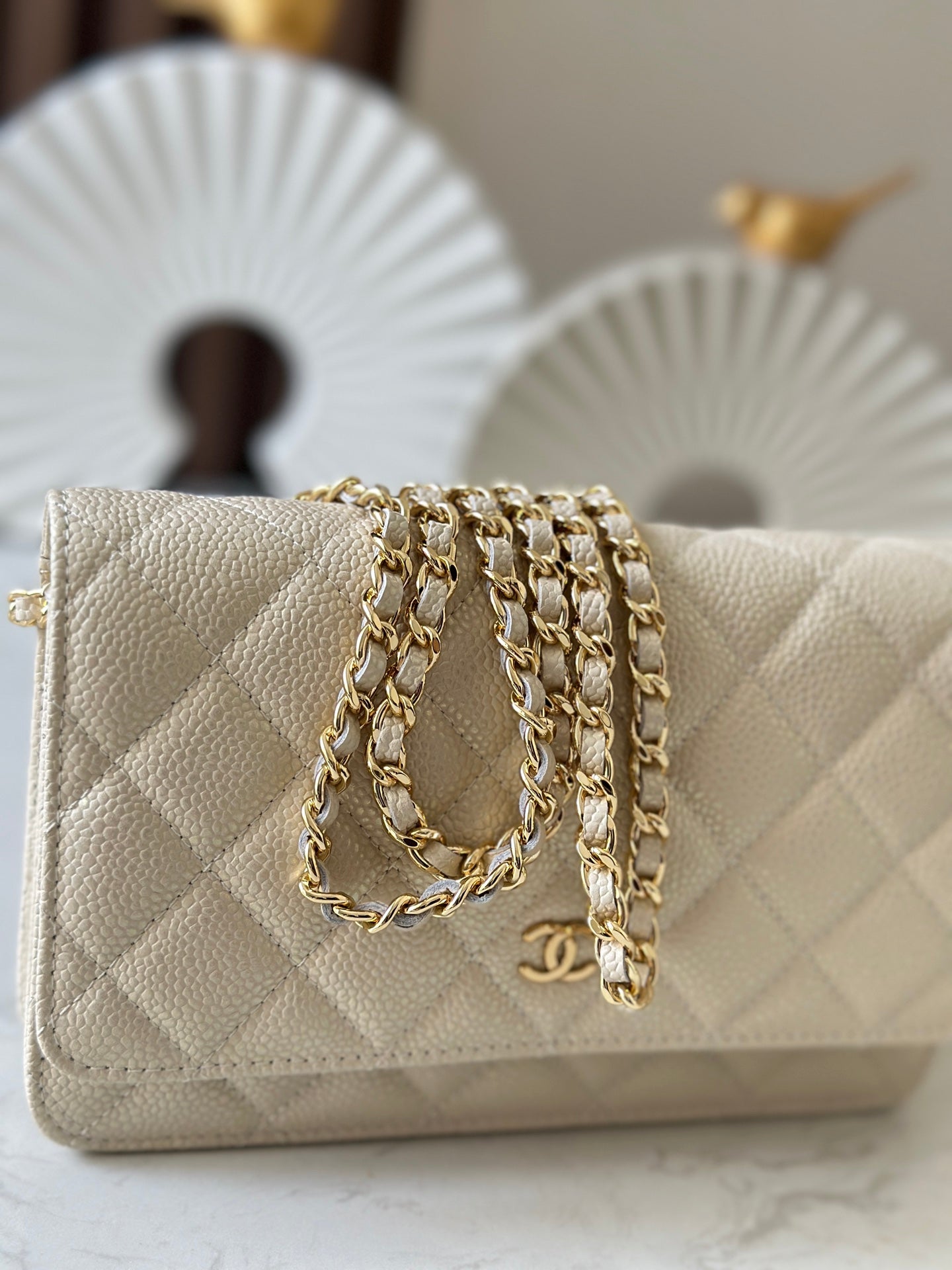 CHANEL 25S WALLET ON CHAIN 19 IN CREAM WHITE CAVIAR