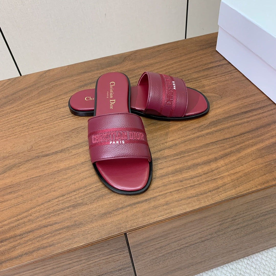 DIOR 25S DWAY SLIDE IN DARK RED CALFSKIN