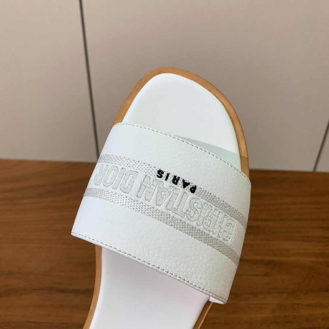 DIOR 25S DWAY SLIDE IN WHITE CALFSKIN