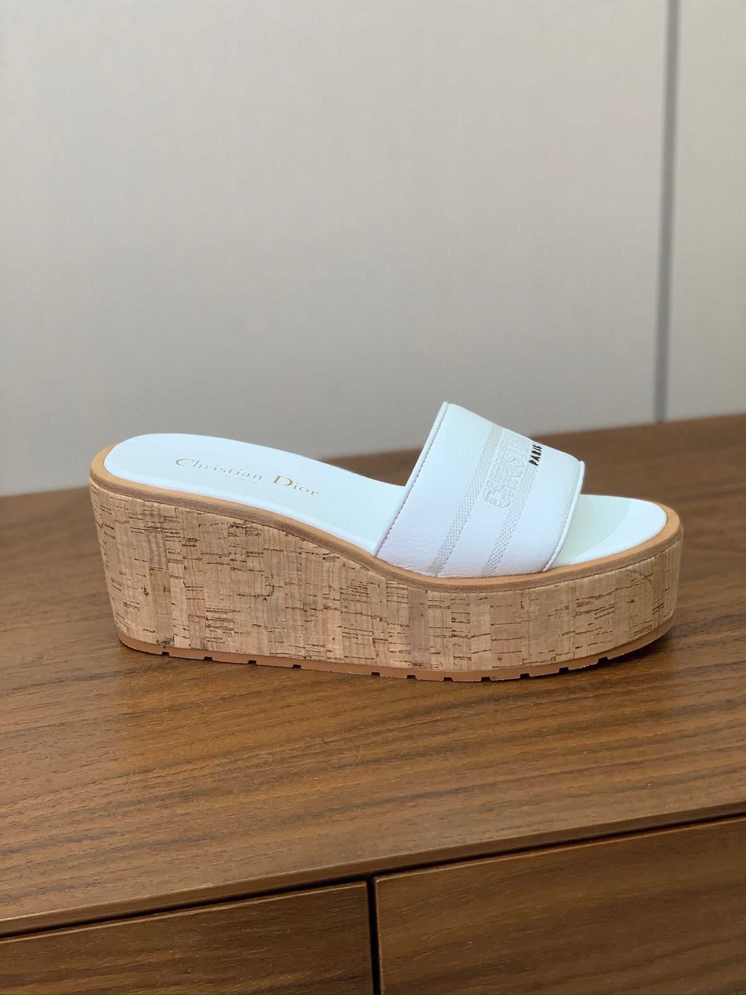 DIOR 25S DWAY WEDGE SLIDE 90 MM IN WHITE CALFSKIN