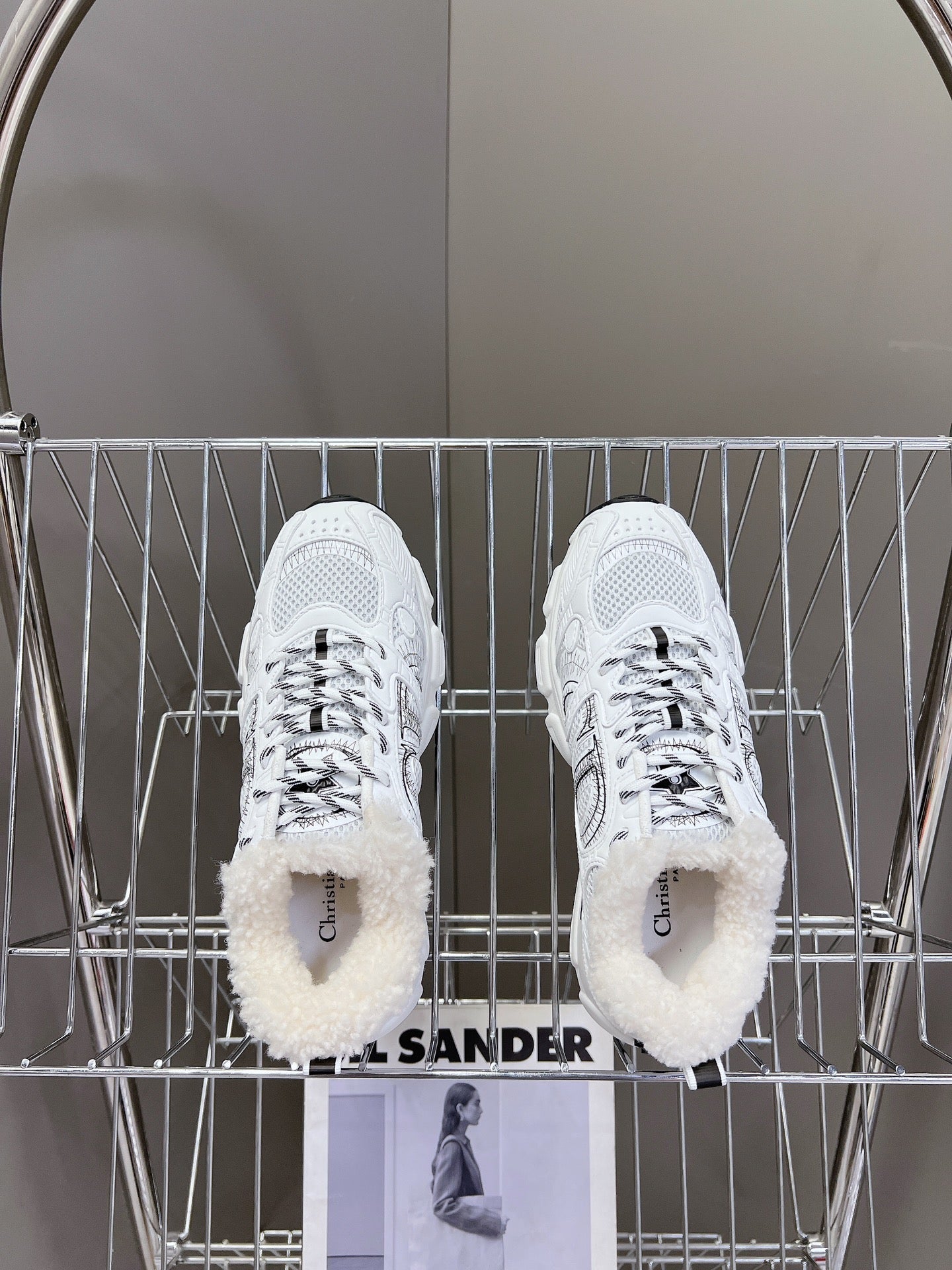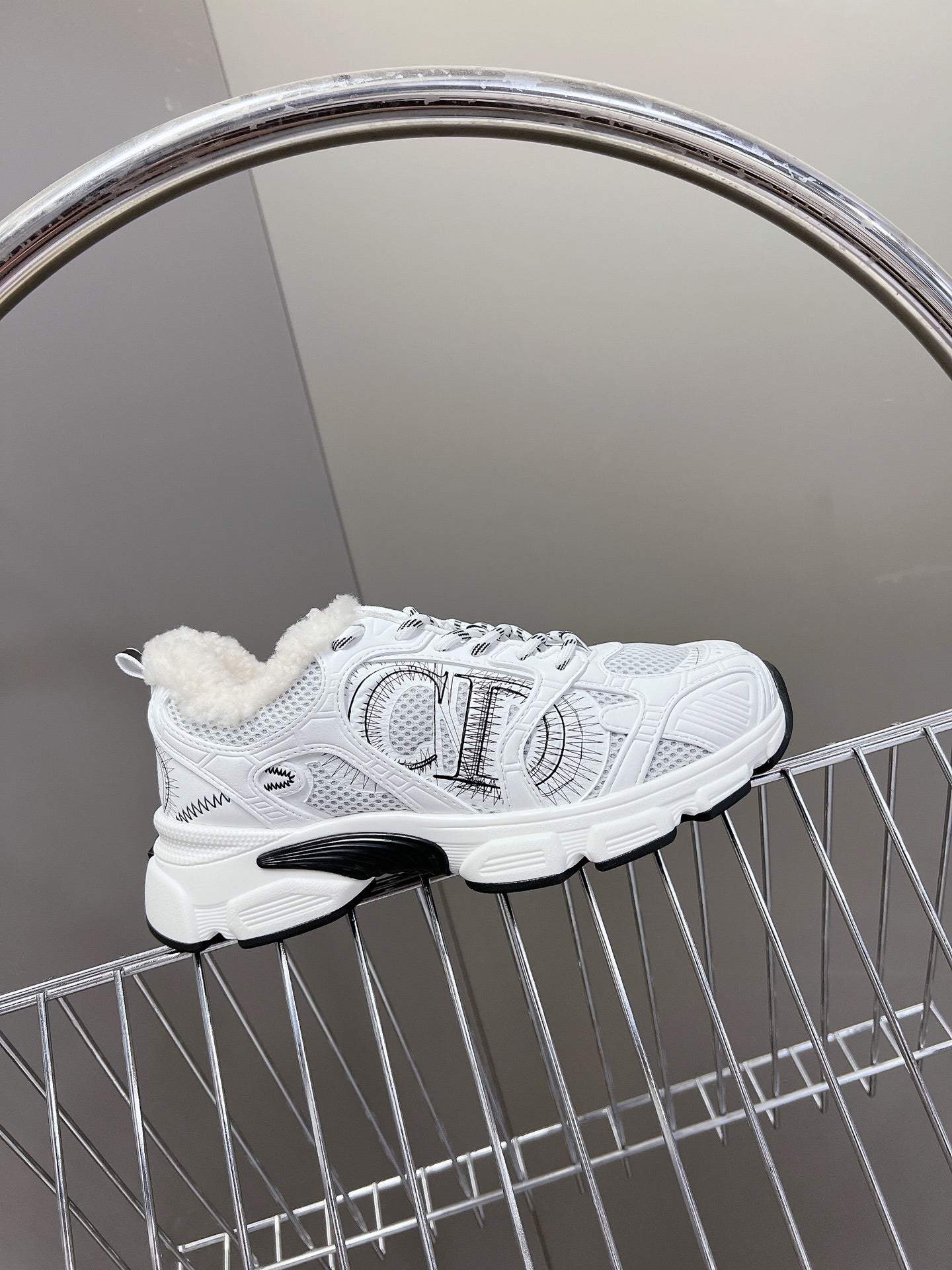 DIOR CHRONO SNEAKER 25S IN WHITE LAMBSKIN AND MESH FABRIC