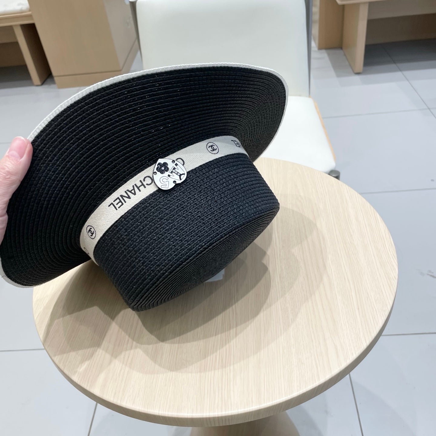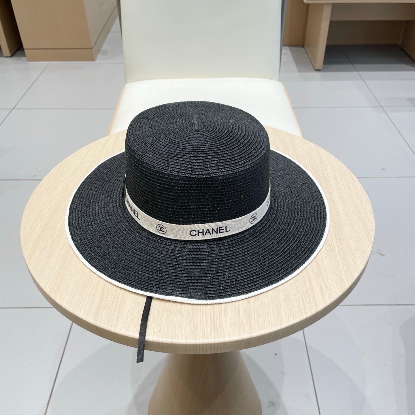 FLAT STRAW HAT BLACK 672722