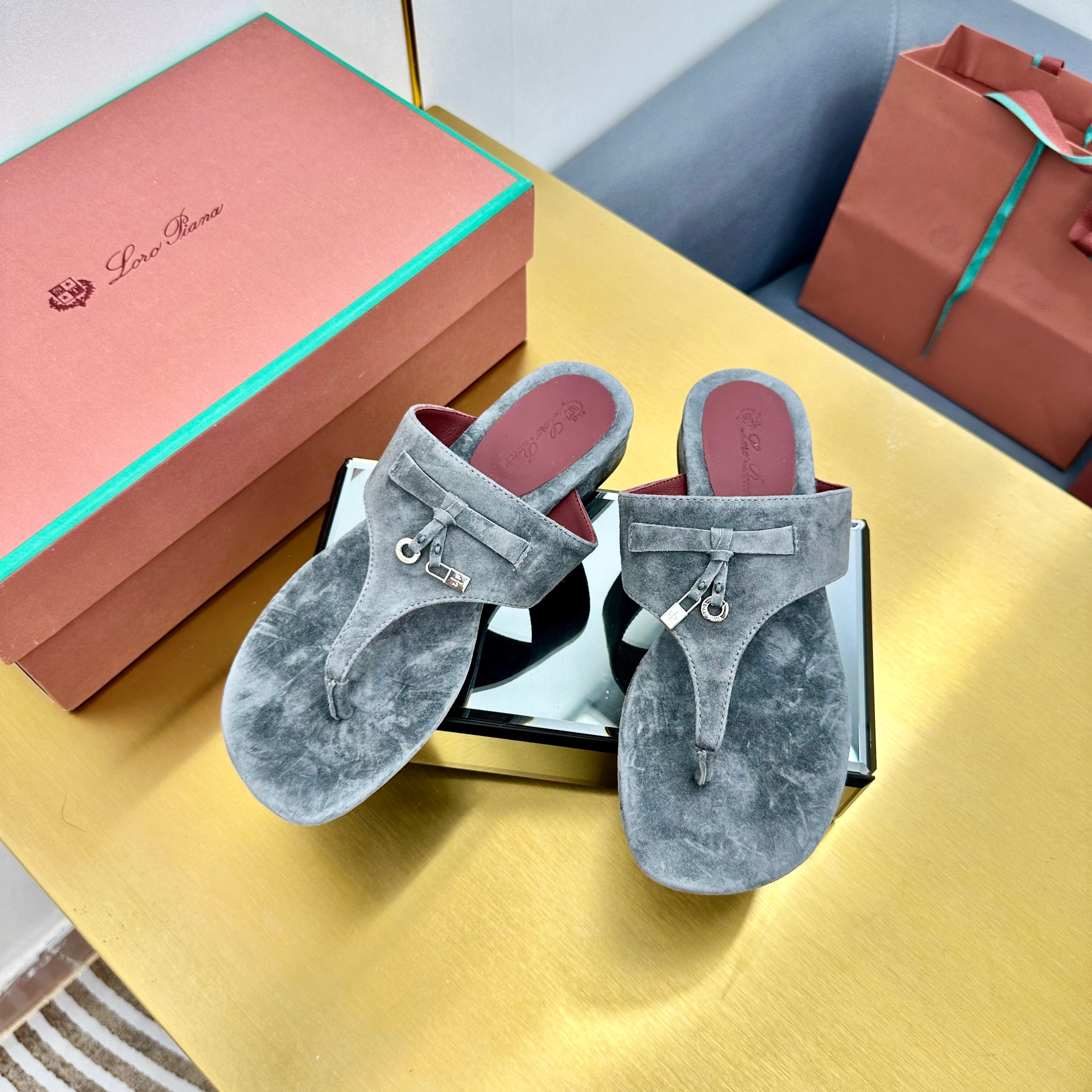 FLIP FLOPS IN DARK GRAY SUEDE AND HARDWARE SILVER