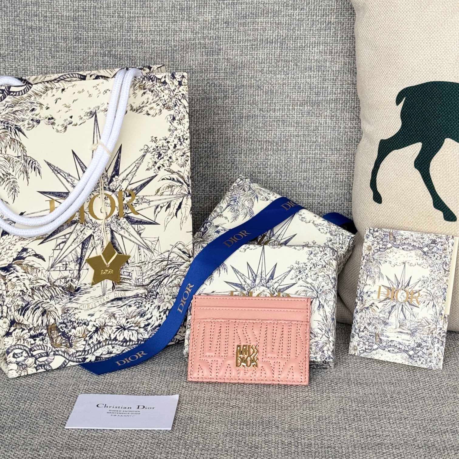 FREESIA CARD HOLDER 10 IN BABY PINK QUILTED ALLOVER CALFSKIN