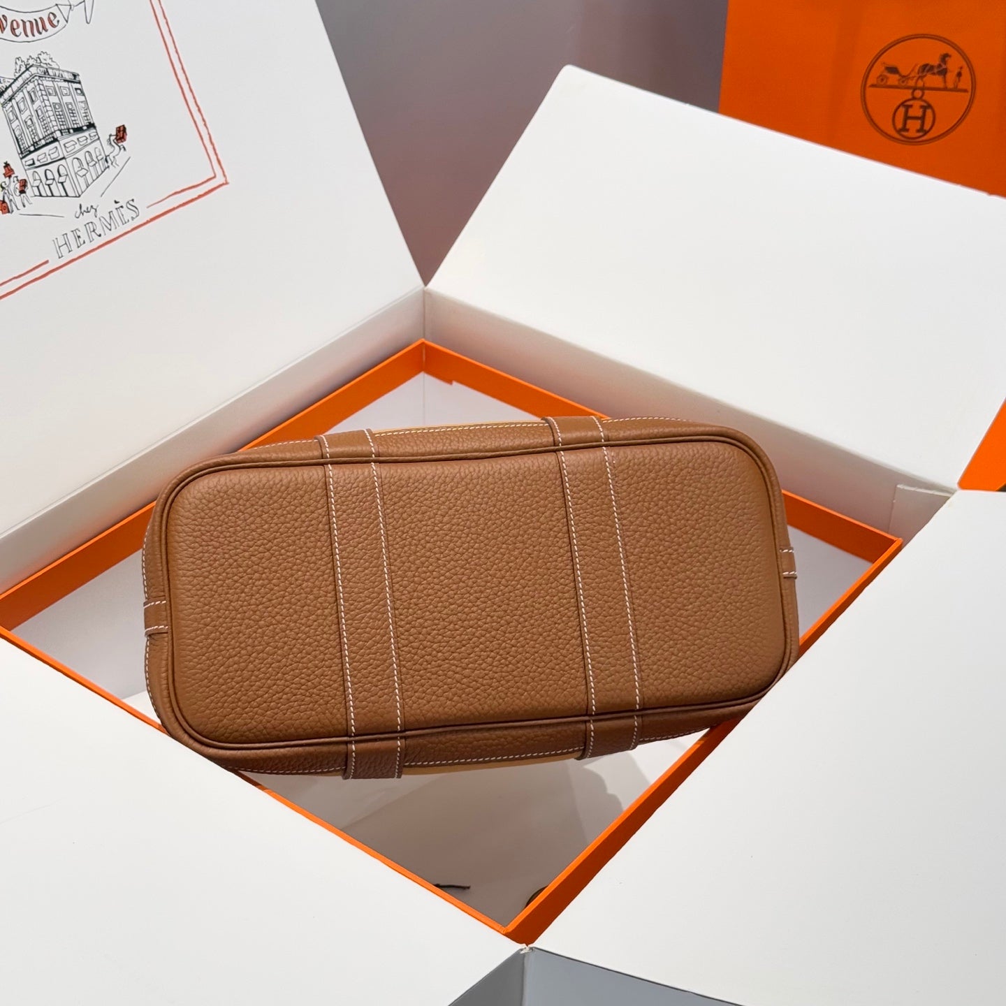 GARDEN PARTY 30CM IN DUNE MAGNOLIA TOILETS COTTON CANVAS AND BROWN CALFSKIN