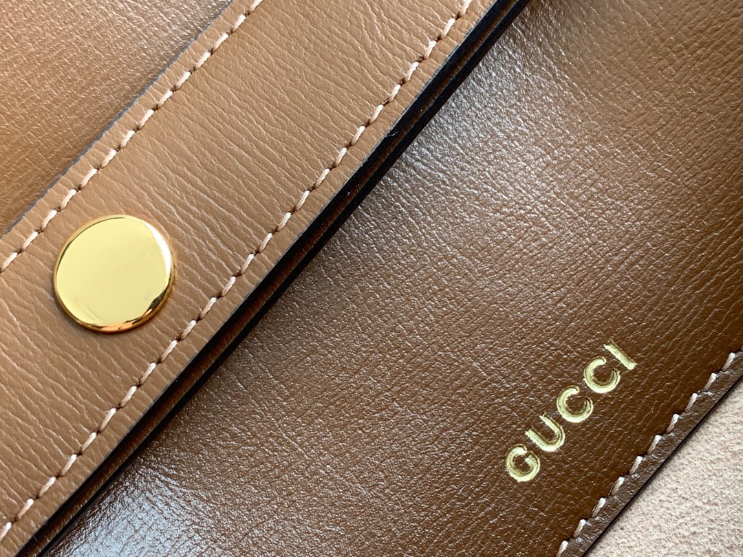 GG 1955 Horsebit Bag 25cm Brown Leather Beige Canvas Gold Hardware