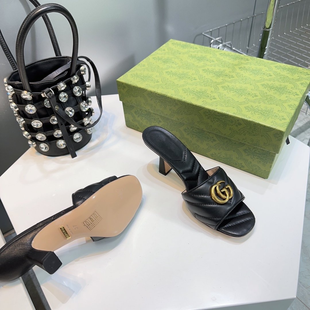 • High-end new embroidered classic G buckle high-heeled sandals.