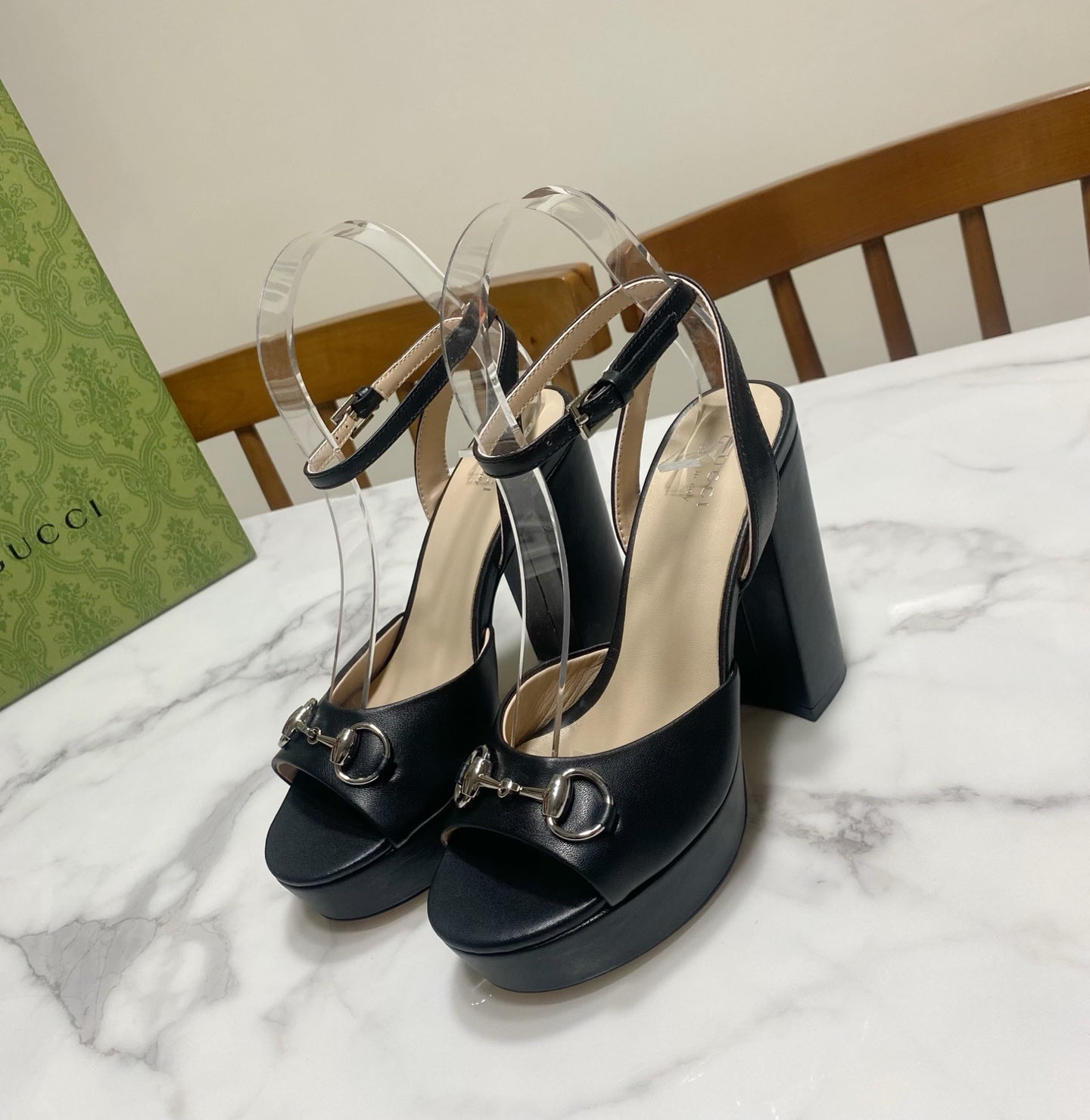 GUCCI 26S HIGH-HEELED SANDALS 105 MM IN BLACK CALFSKIN