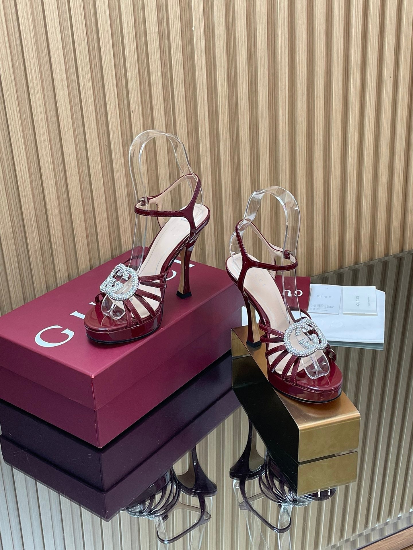 GUCCI 26S HIGH-HEELED SANDALS 125 MM IN DARK RED CALFSKIN