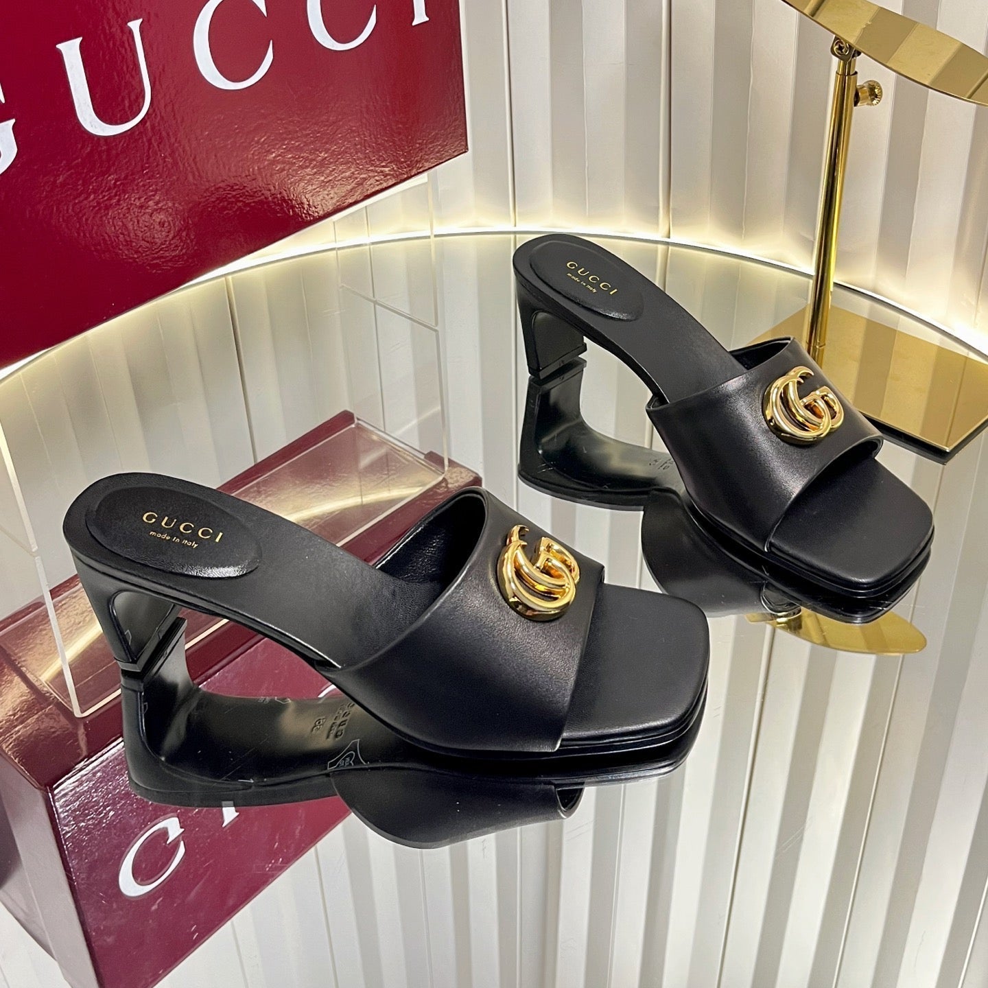 GUCCI 26S HIGH-HEELED SANDALS 45 MM IN BLACK CALFSKIN