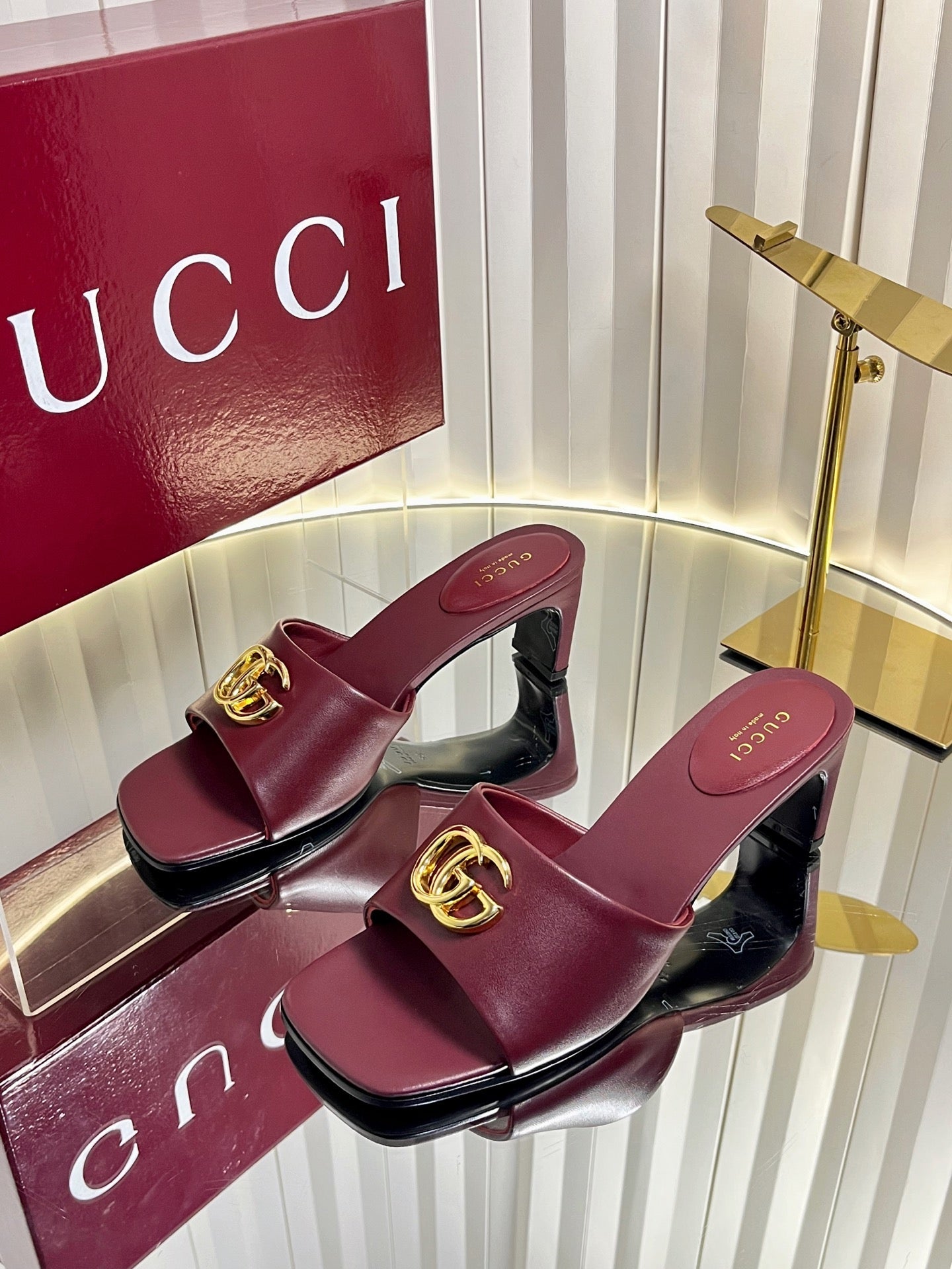 GUCCI 26S HIGH-HEELED SANDALS 45 MM IN DARK RED CALFSKIN