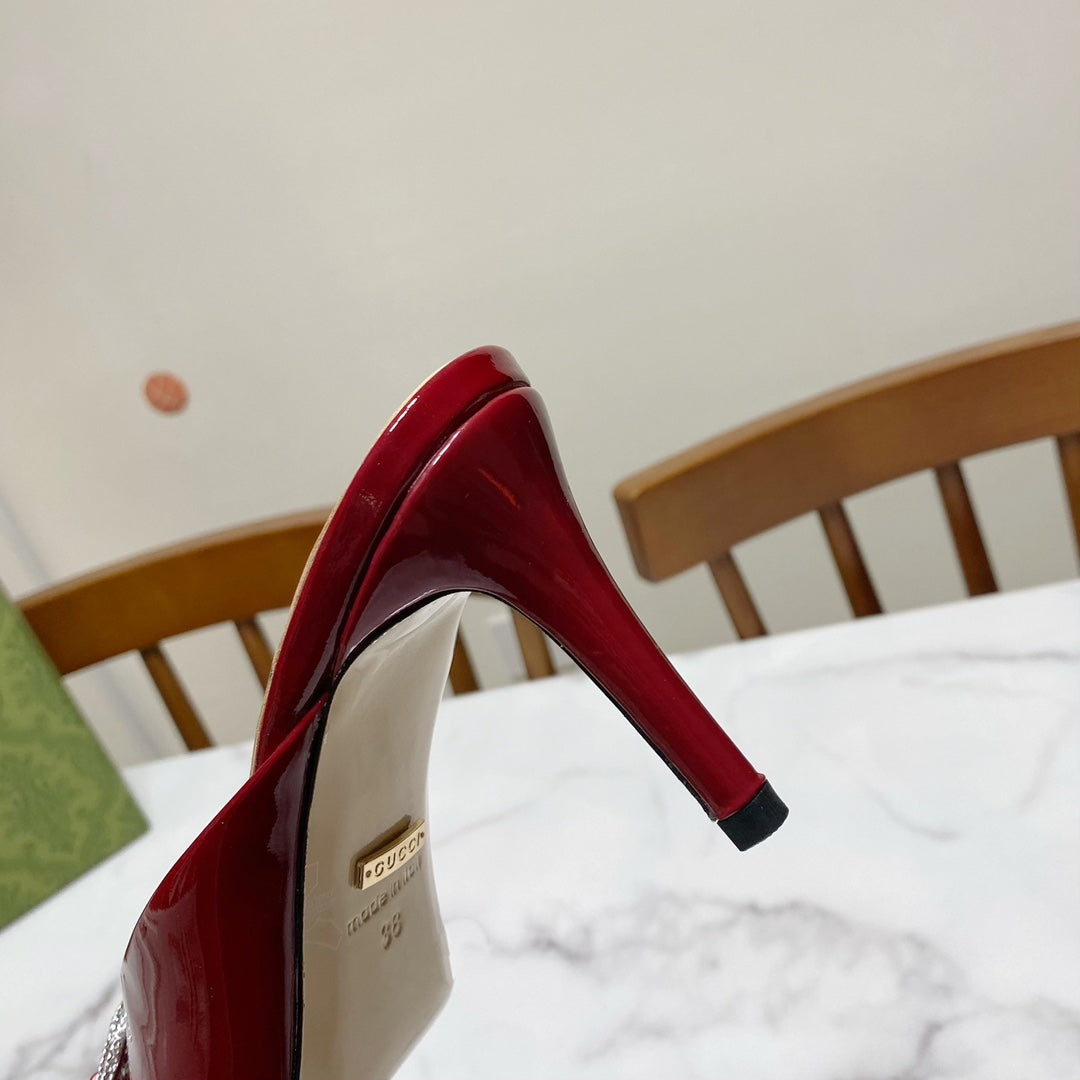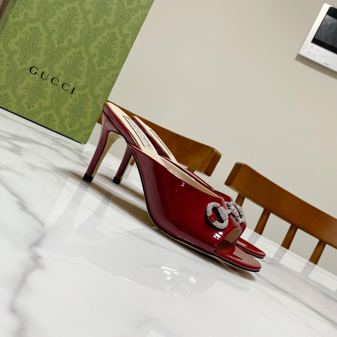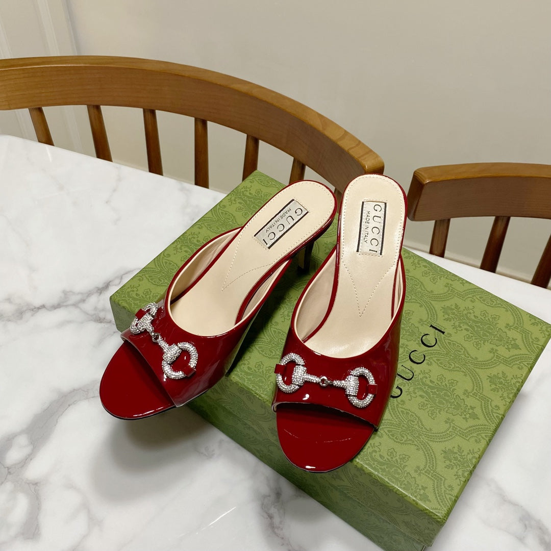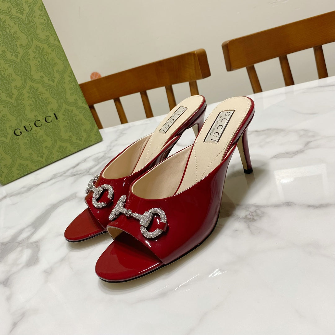 GUCCI 26S HORSEBIT HIGH-HEELED SANDALS 80 MM IN DARK RED GLOSSY CALFSKIN