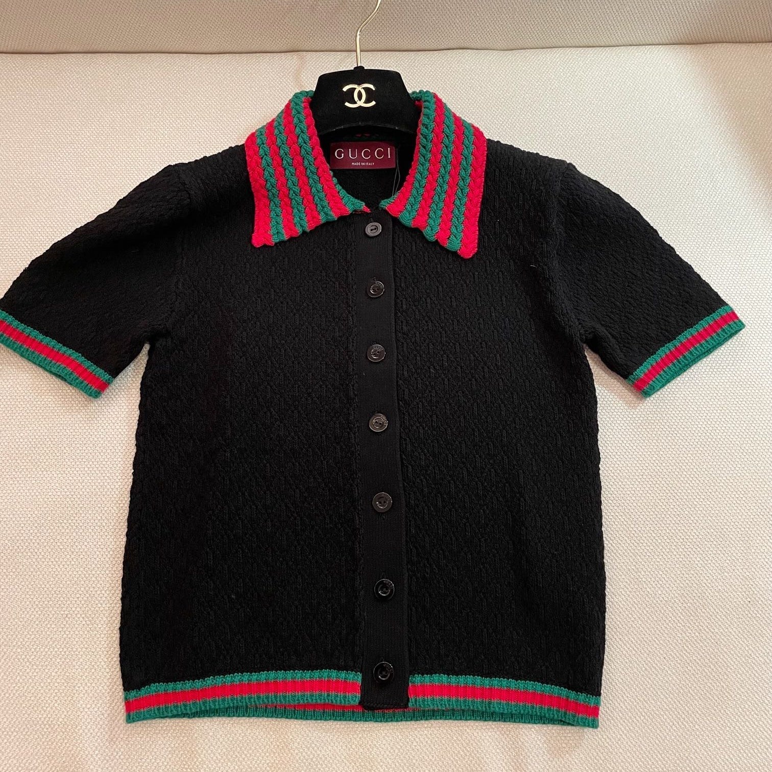 GUCCI SHORT-SLEEVE KNIT POLO SHIRT STYLE 112