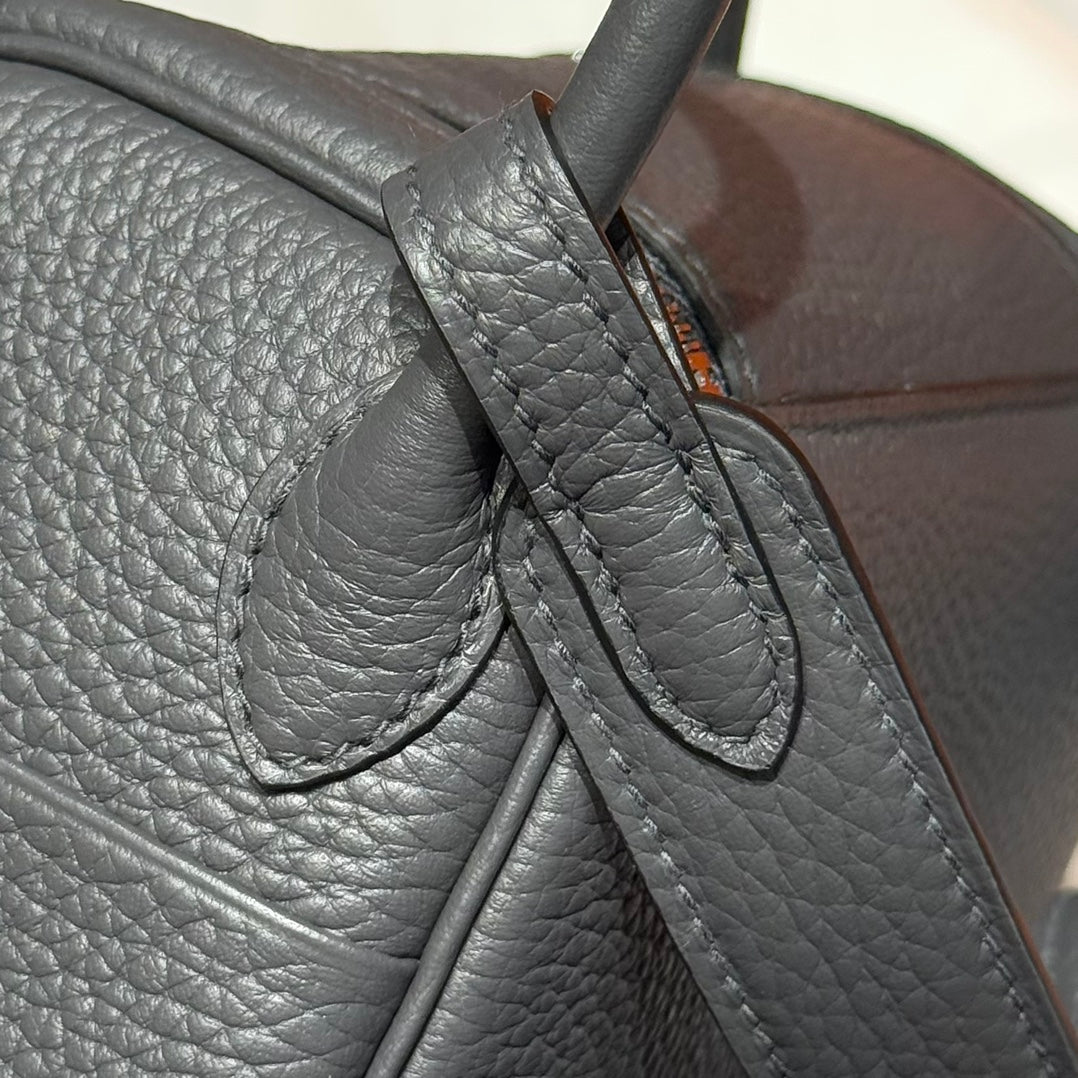 HERMES 25S MINI LINDY 19 IN CHARCOAL GRAY CALFSKIN SILVER HARDWARE