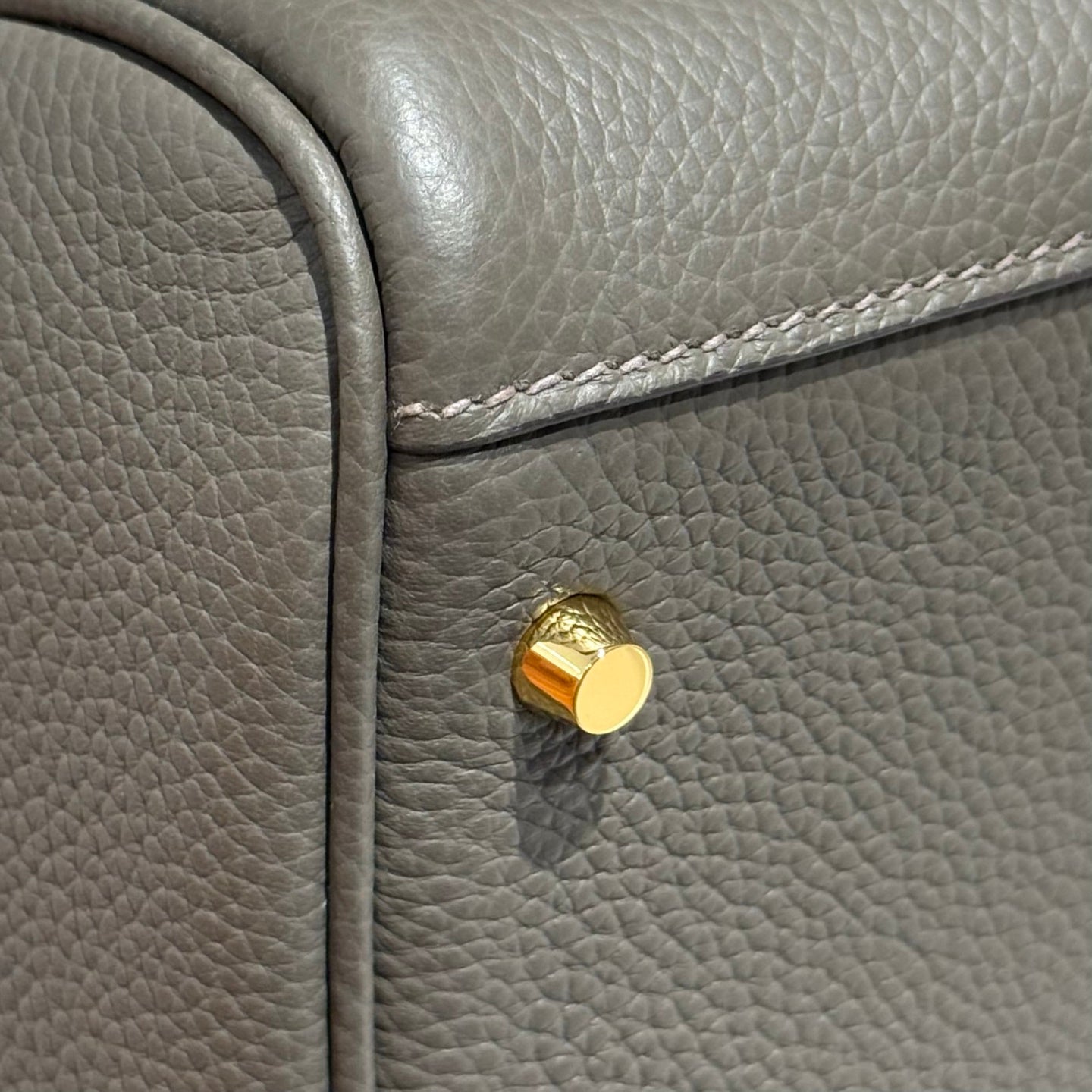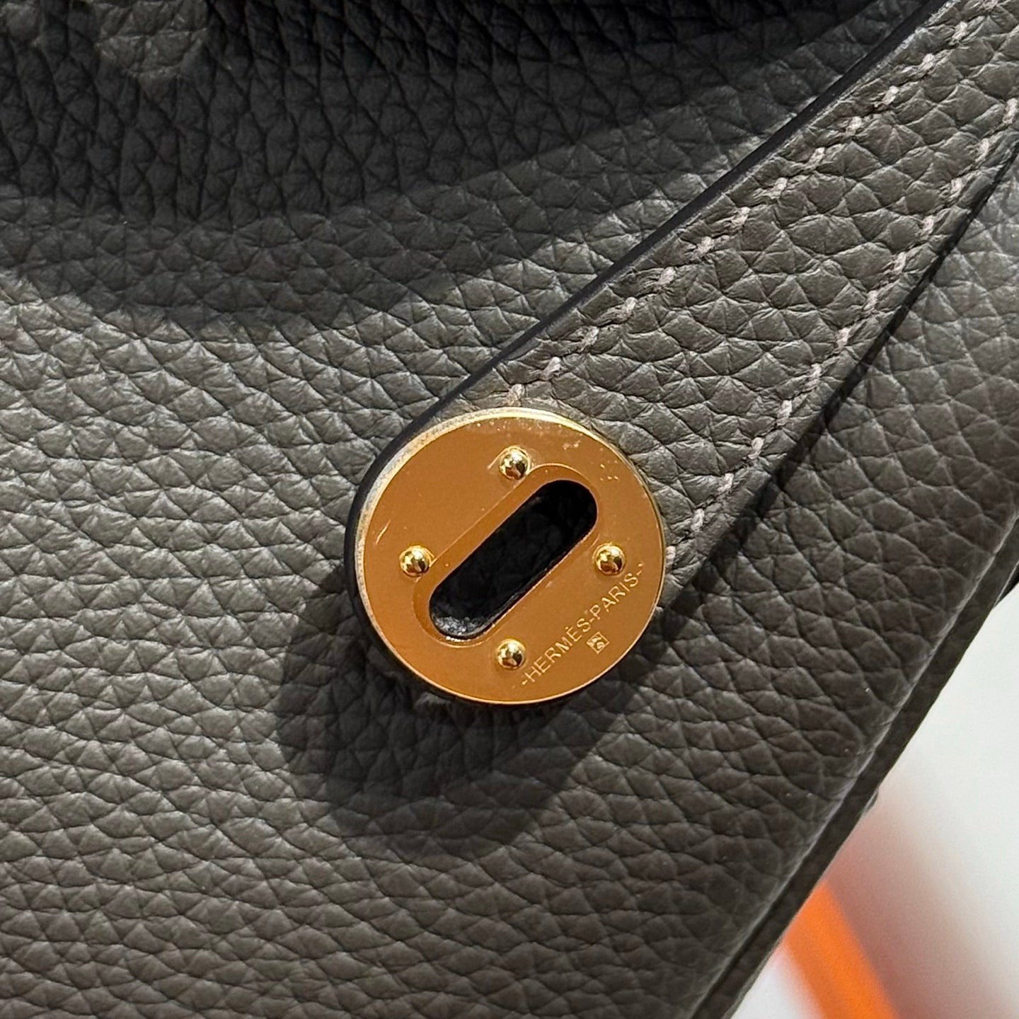 HERMES 25S MINI LINDY 19 IN DARK OLIVE GRAY CALFSKIN GOLD HARDWARE
