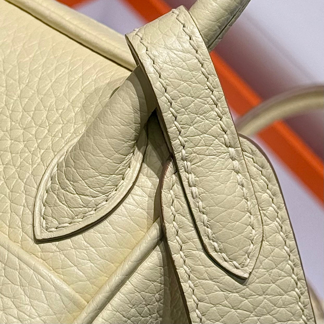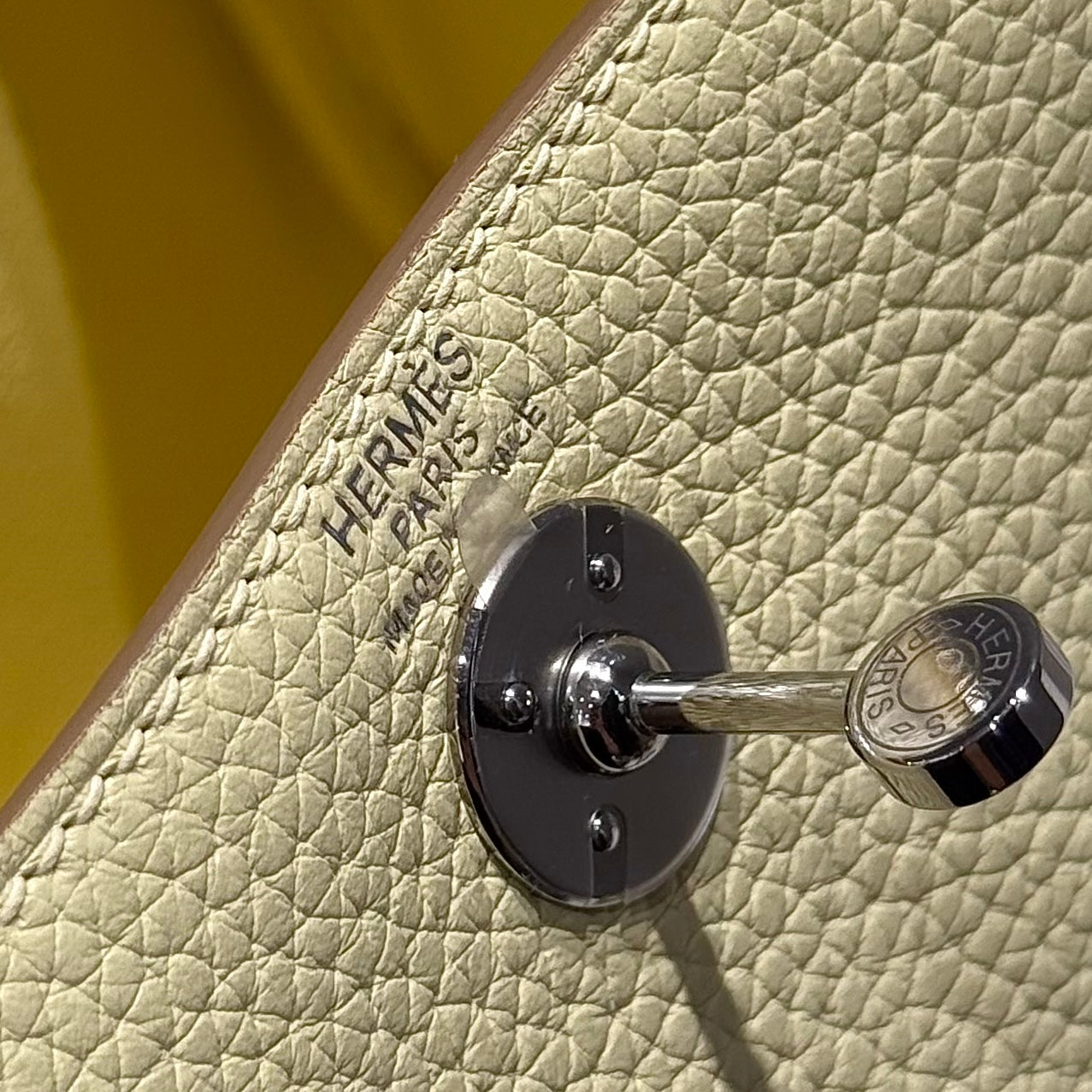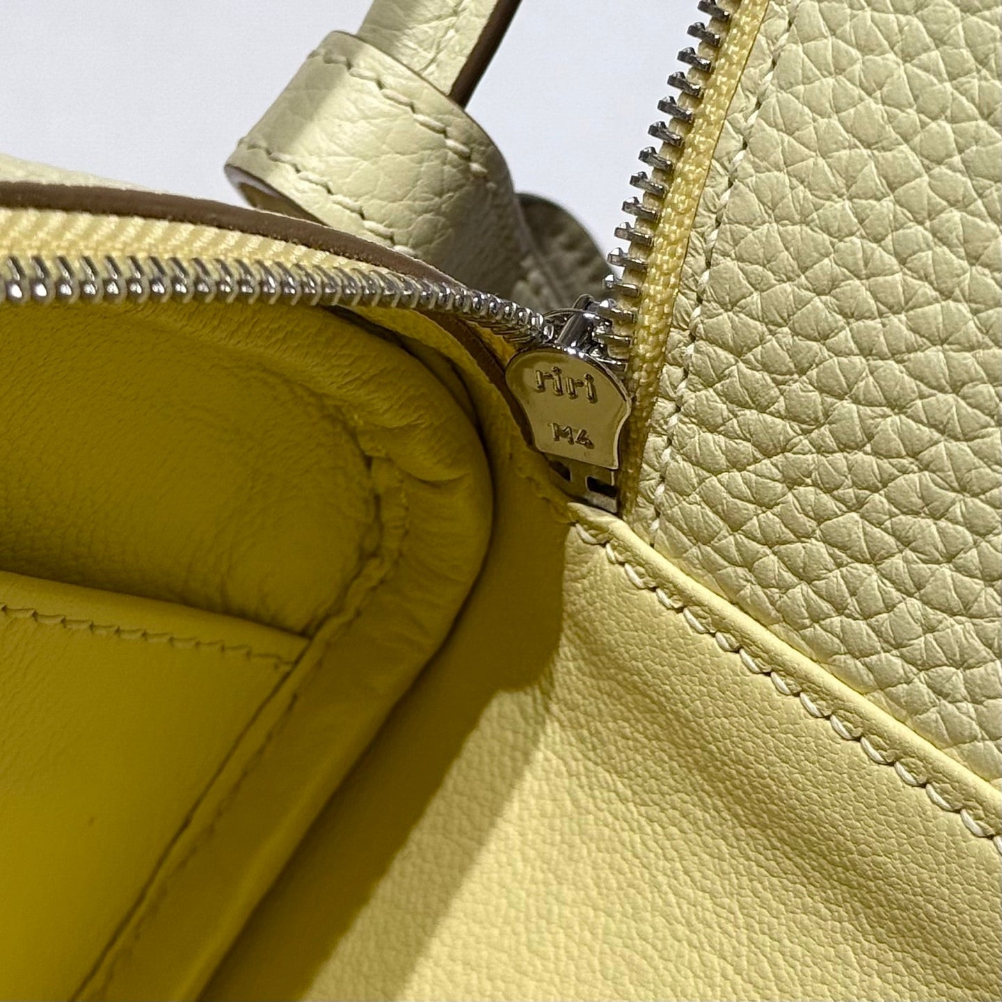 HERMES 25S MINI LINDY 19 IN PASTEL YELLOW CALFSKIN SILVER HARDWARE