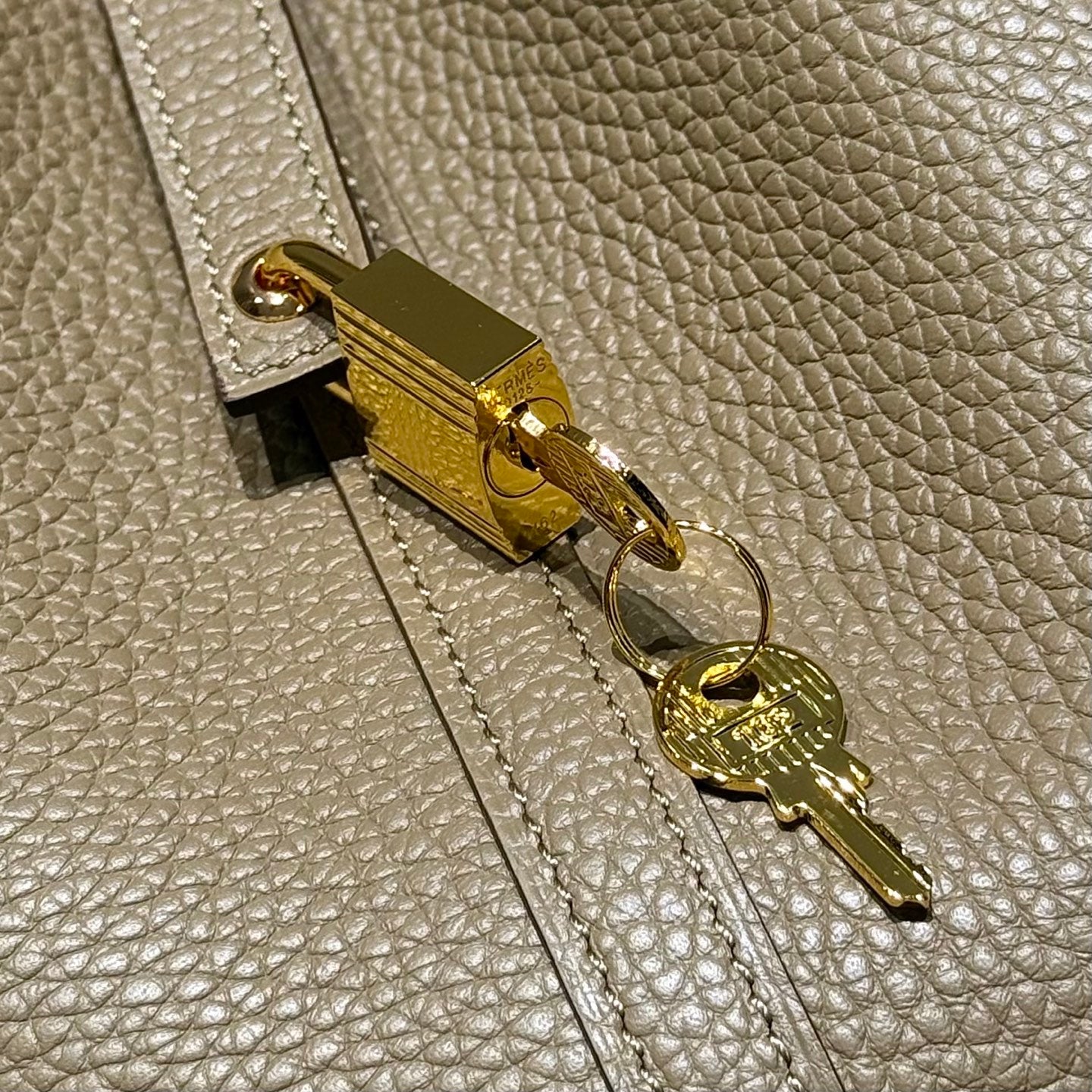 HERMES 25S PICOTIN LOCK 18 IN OLIVE GOLD CALFSKIN GOLD HARDWARE