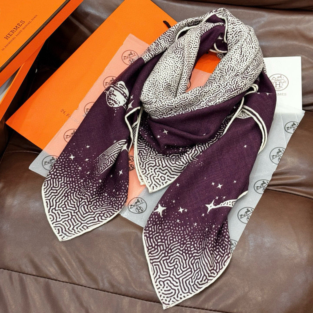 HERMES 25S SCARF 140 IN SILK CASHMERE 987419