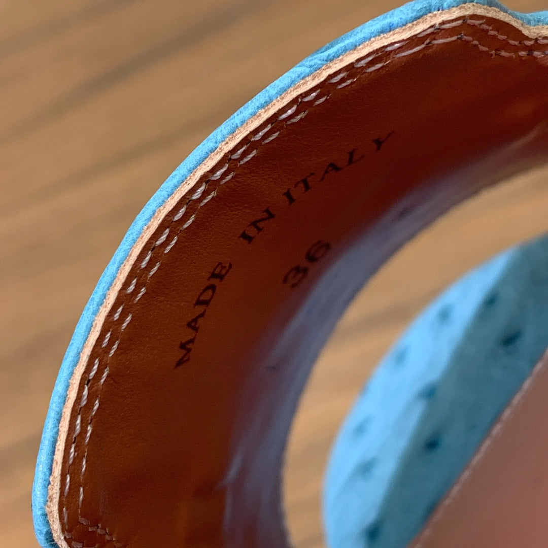 HIGH HEEL IN LIGHT BLUE LAMBSKIN OSTRICH SKIN