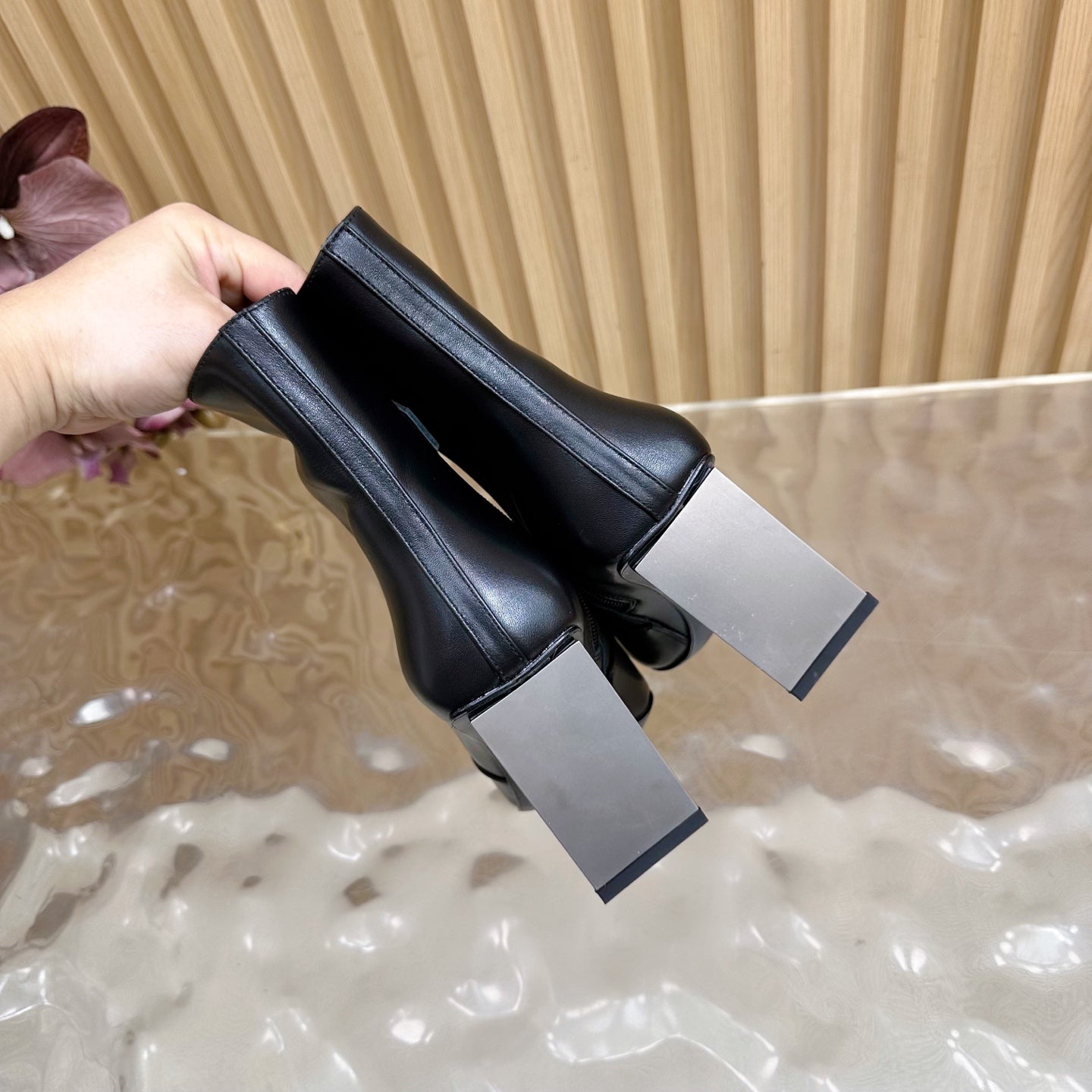 HM 25S ANKLE BOOTS 70 MM IN BLACK LAMBSKIN