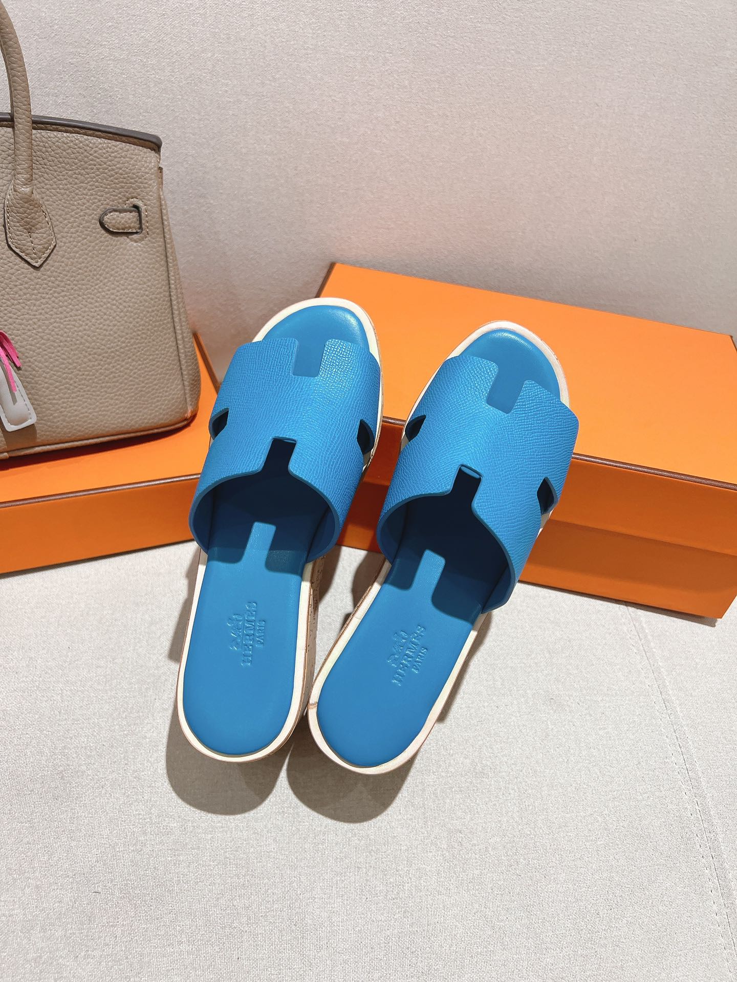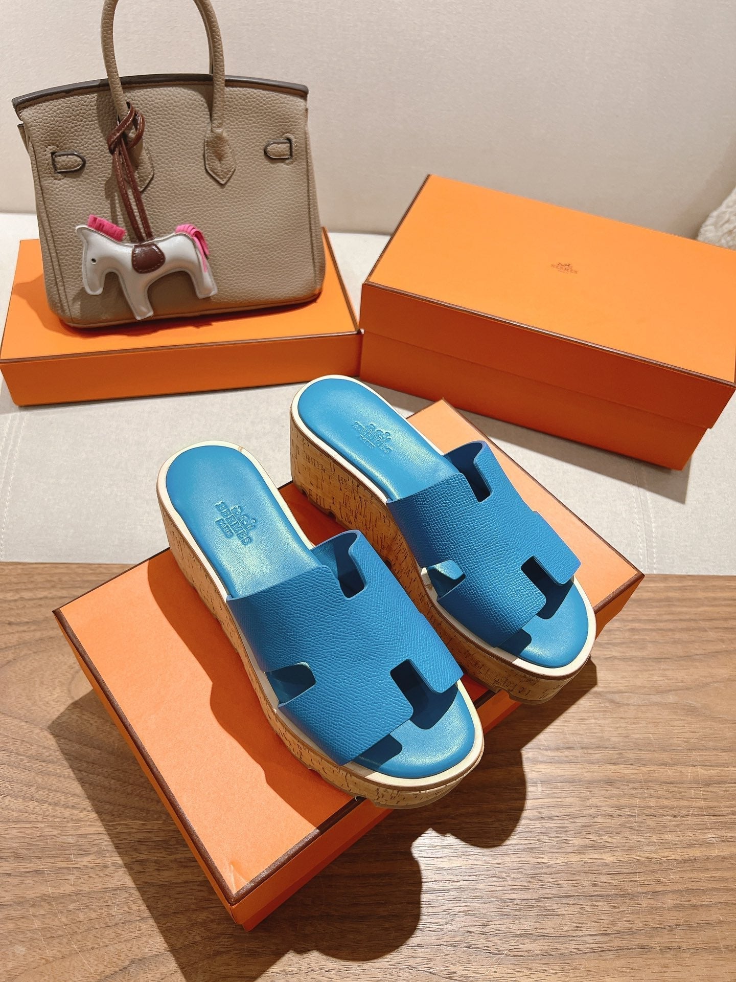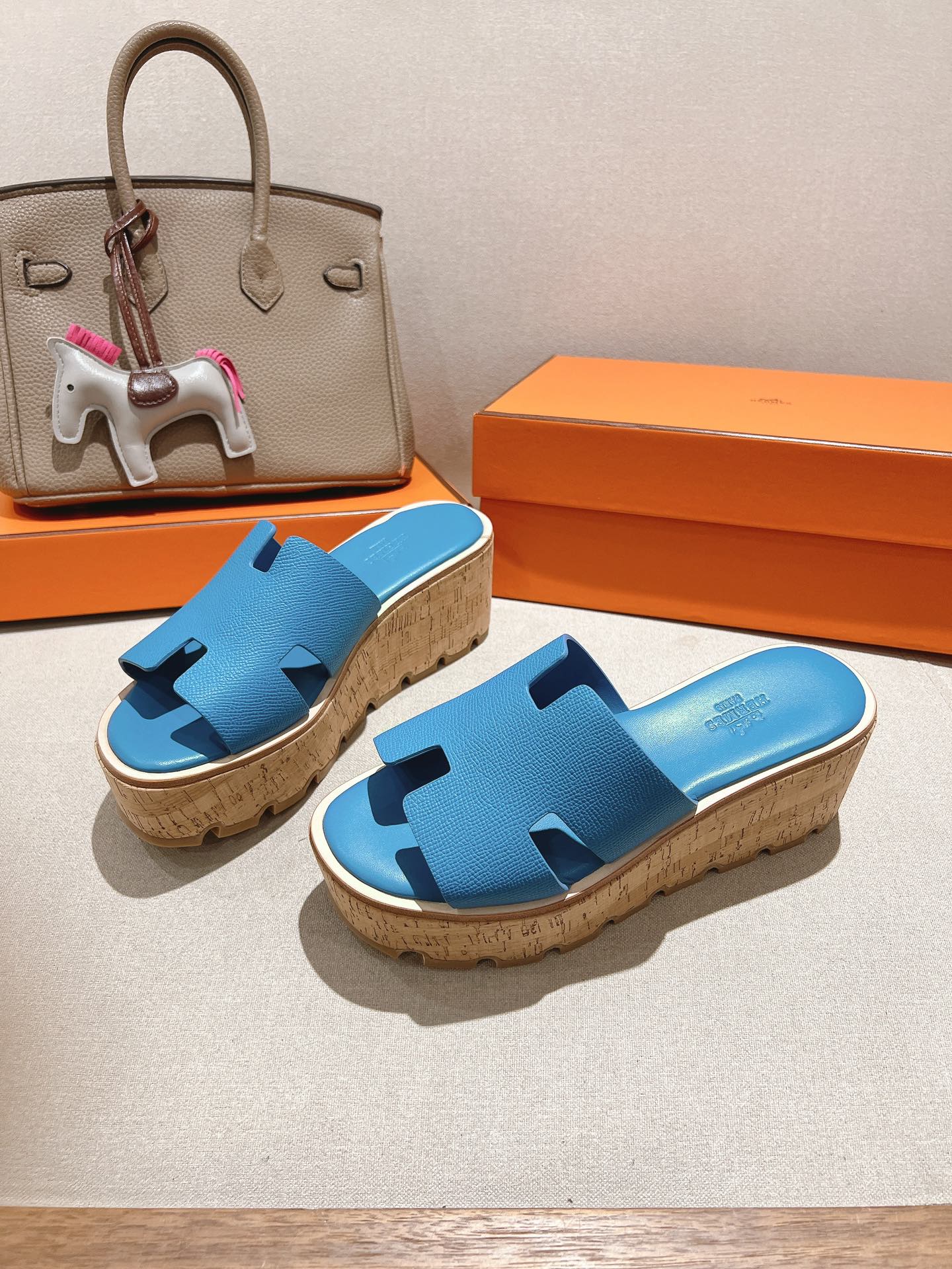 HM 25S HIGH WEDGE SANDALS IN BLUE LAMBSKIN STYLE 12