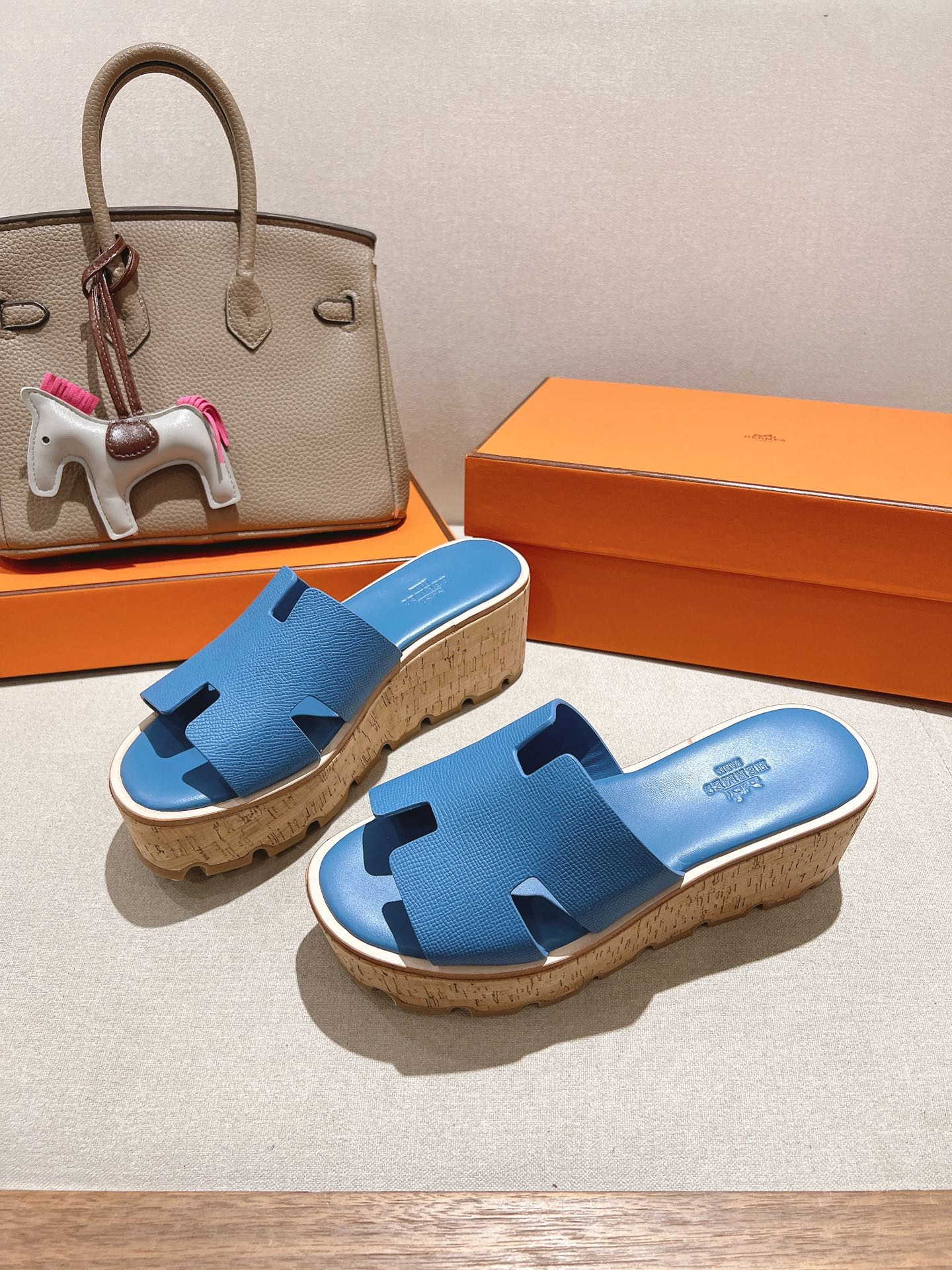 HM 25S HIGH WEDGE SANDALS IN BLUE LAMBSKIN STYLE 14