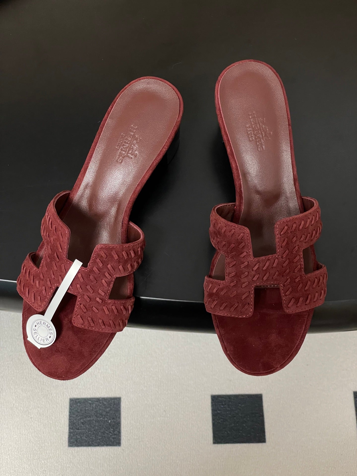 HM 25S ORAN HIGH‑HEEL SANDAL IN DARK RED SUEDE AND LAMBSKIN