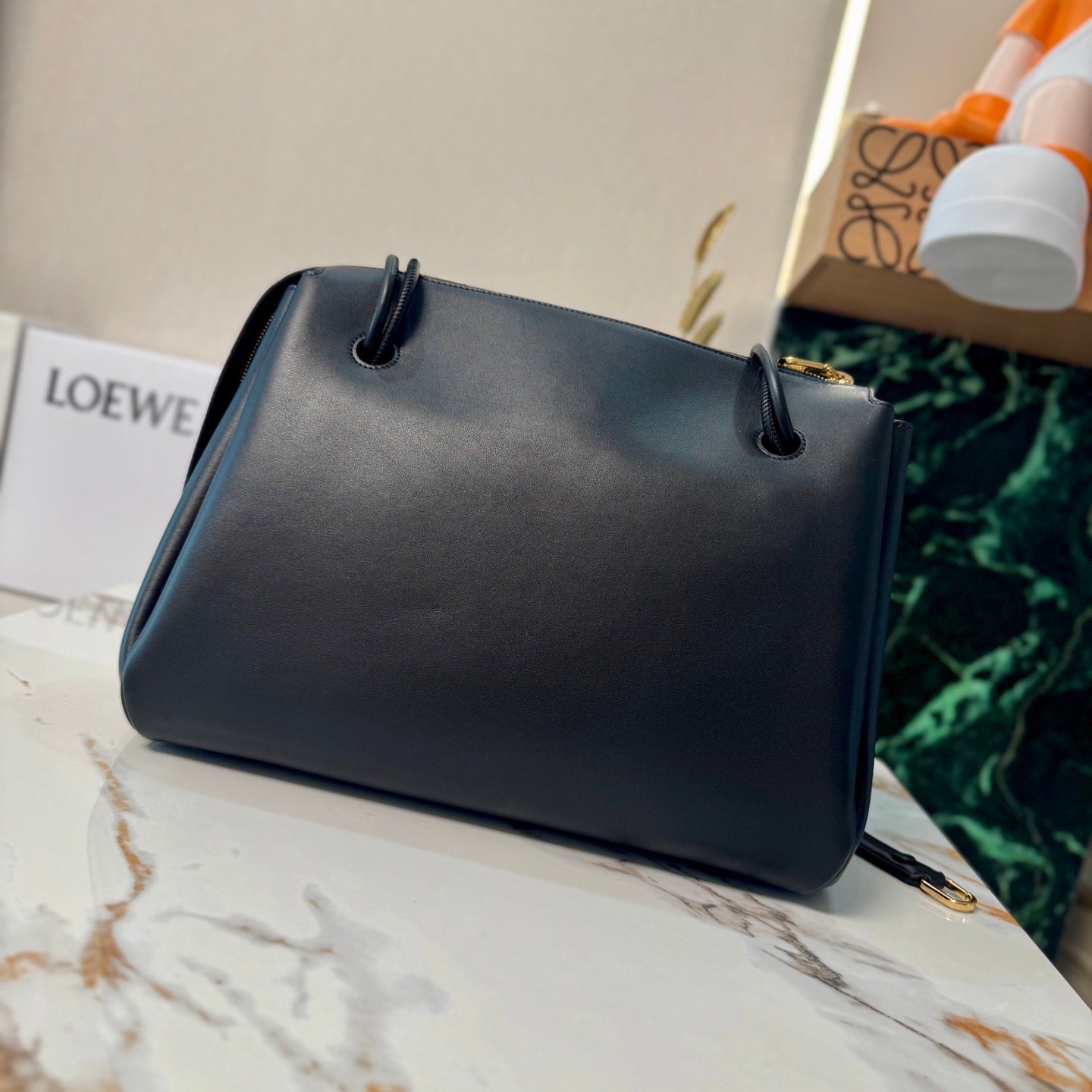 LOEWE 25S LARGE MADRID BAG 33 IN BLACK CALFSKIN GOLD HARDWARE