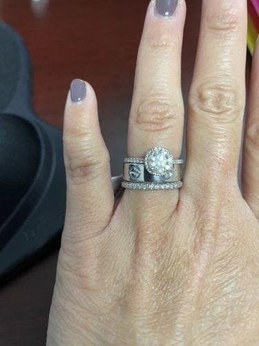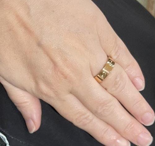 I am one who likes to stack many rings on one finger. This is perfect because it looks good in the middle of a stack of rings. So, I will put smaller millimeter rings underneath us and above it and this provides a nice middle which gives it a very contemporary look.