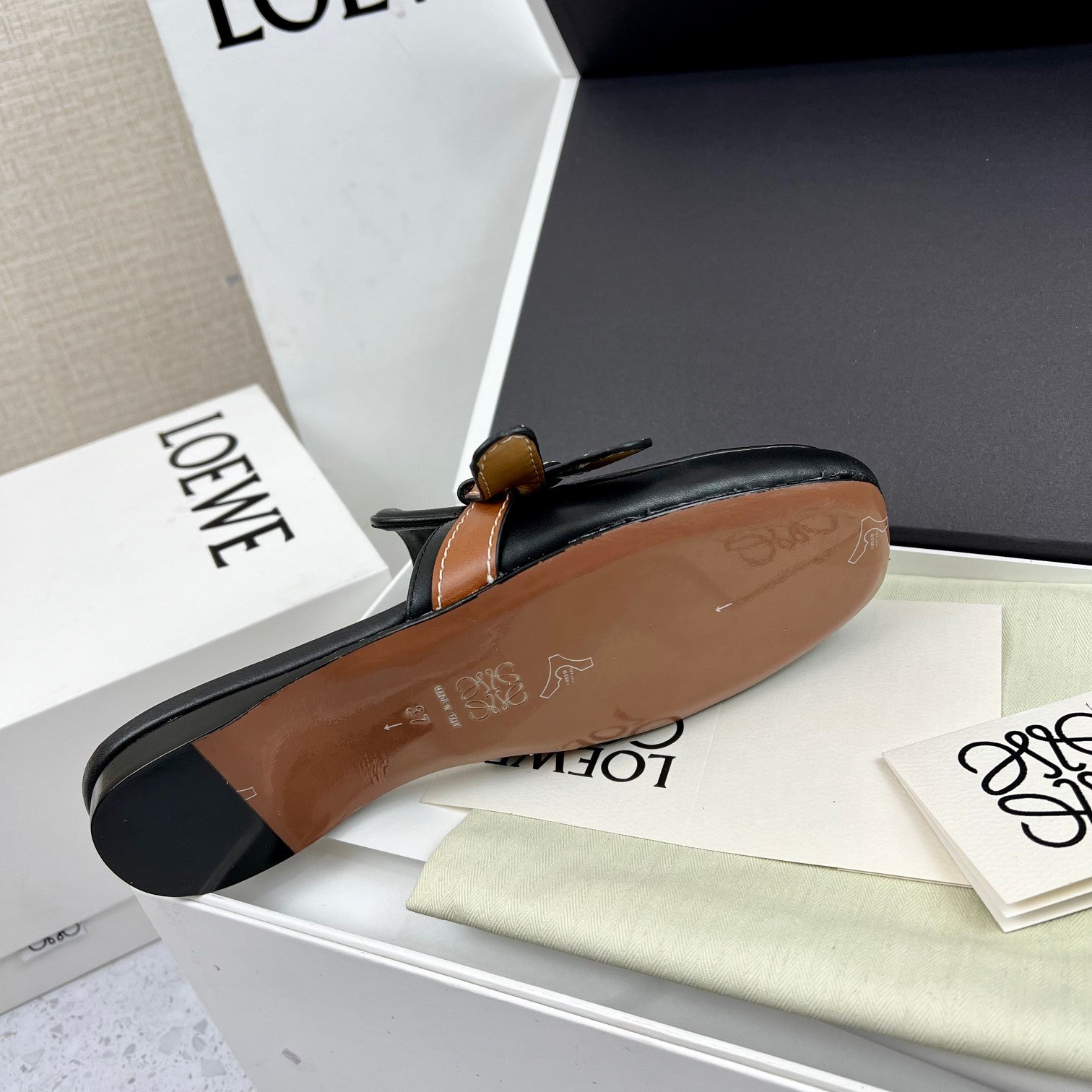 LW GATE BROWN BELTED MULE BLACK CALFSKIN