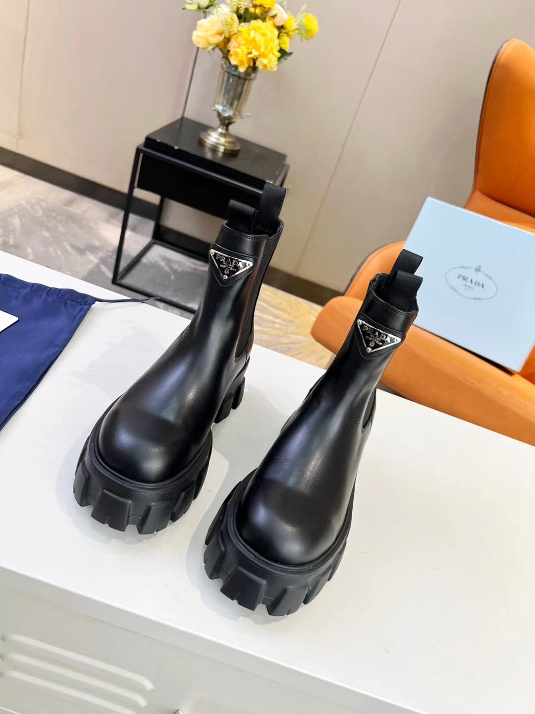 PRA MONOLITH BRUSHED BOOTIES 55 BLACK CALFSKIN