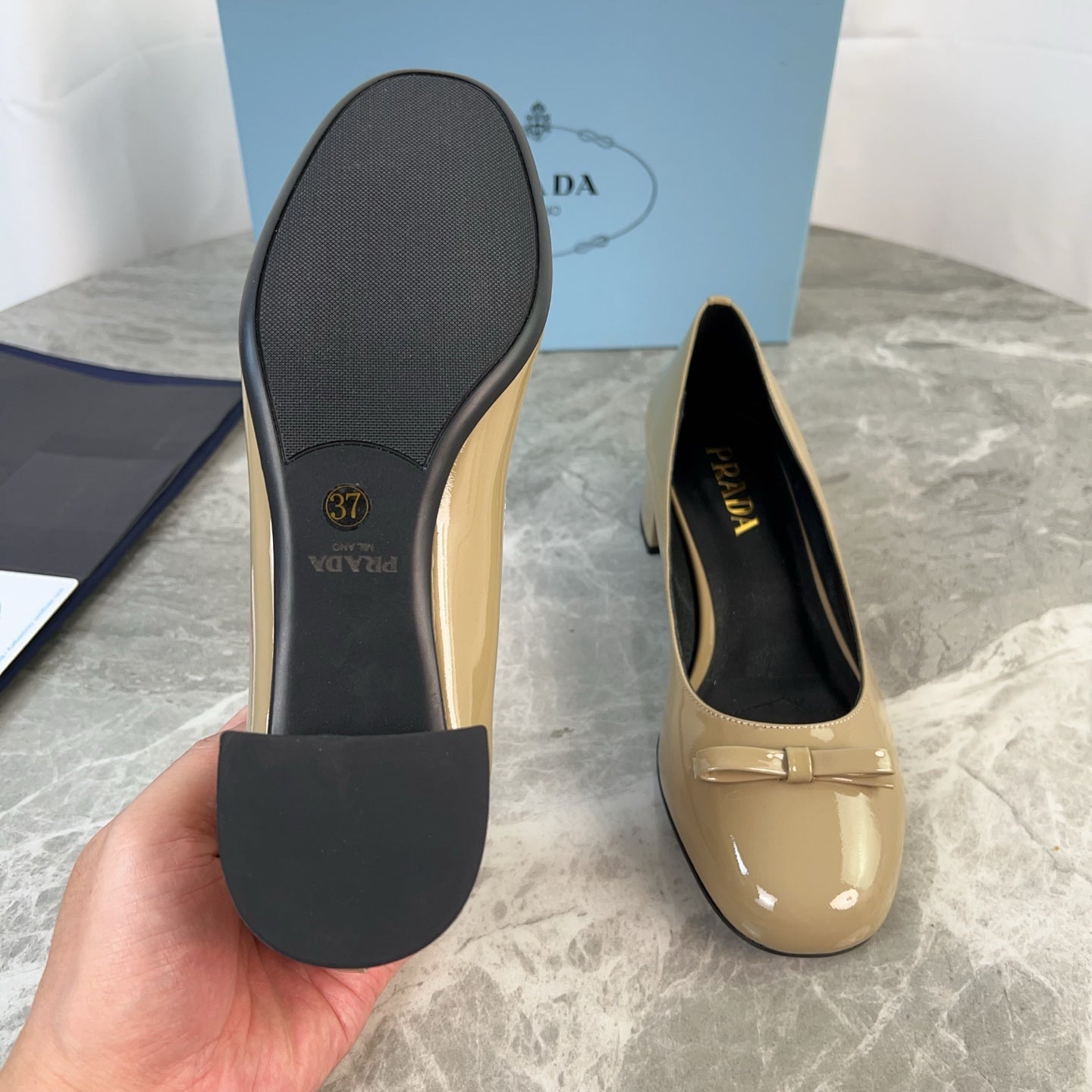 PRADA 25S LOW HEELS SLIP ON BOW 45MM IN GOLDEN BEIGE GLOSSY CALFSKIN