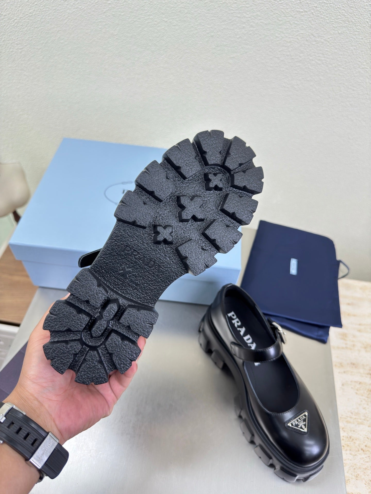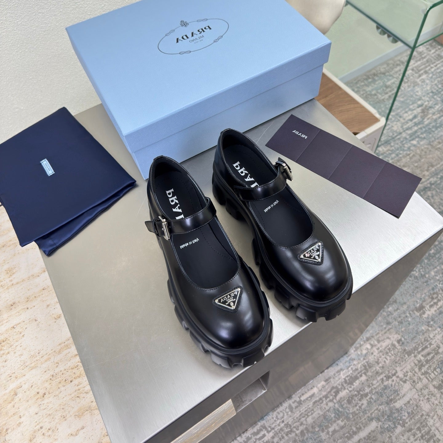 PRADA 25S PLATFORM MARY JANE SHOES IN BLACK CALFSKIN STYLE 3