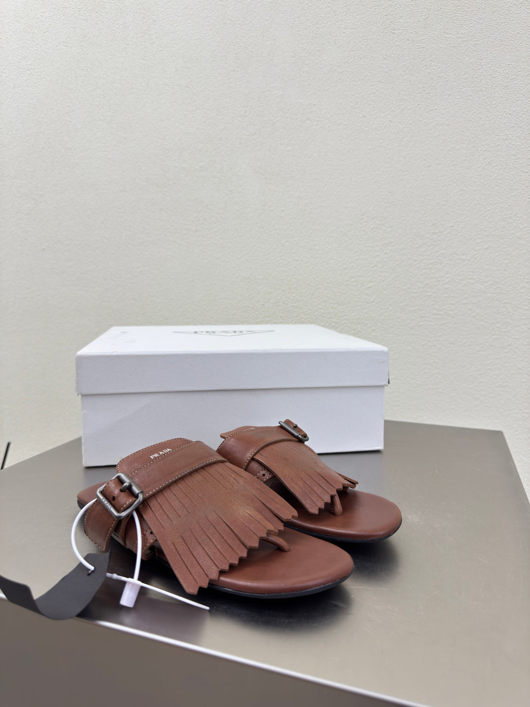 PRADA 25S SHUFFLE LEATHER THONG SANDALS IN SIENNA CALFSKIN