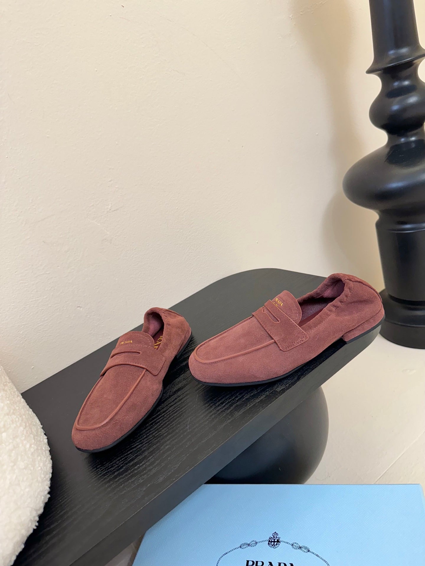 PRADA 25S SHUFFLE LOAFERS IN DARK BROWN SUEDE