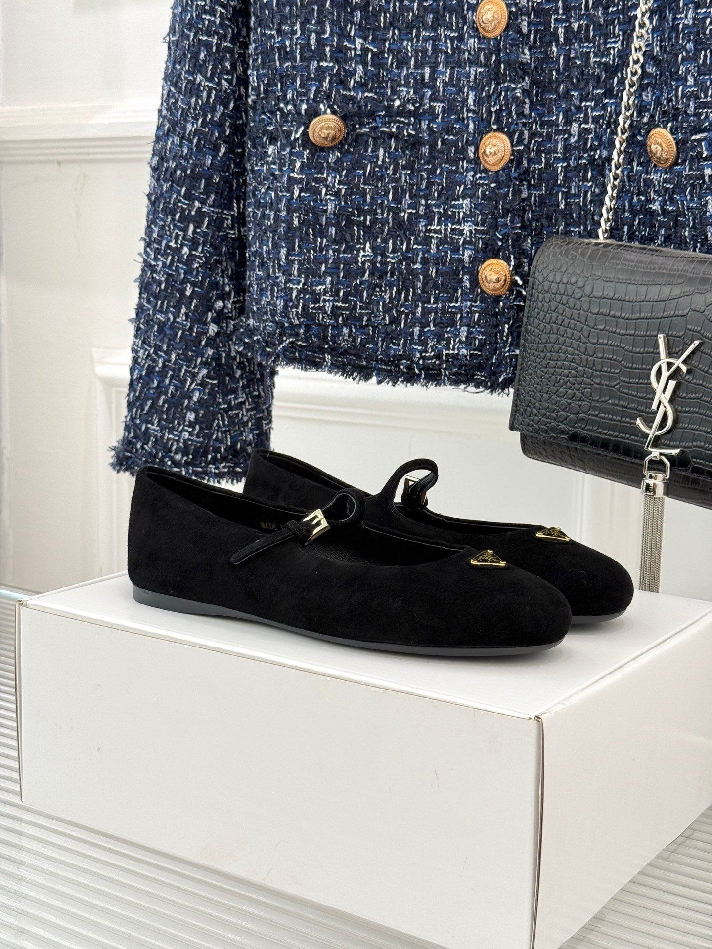 PRADA 25S SOFT PADDED BALLERINAS IN BLACK SUEDE