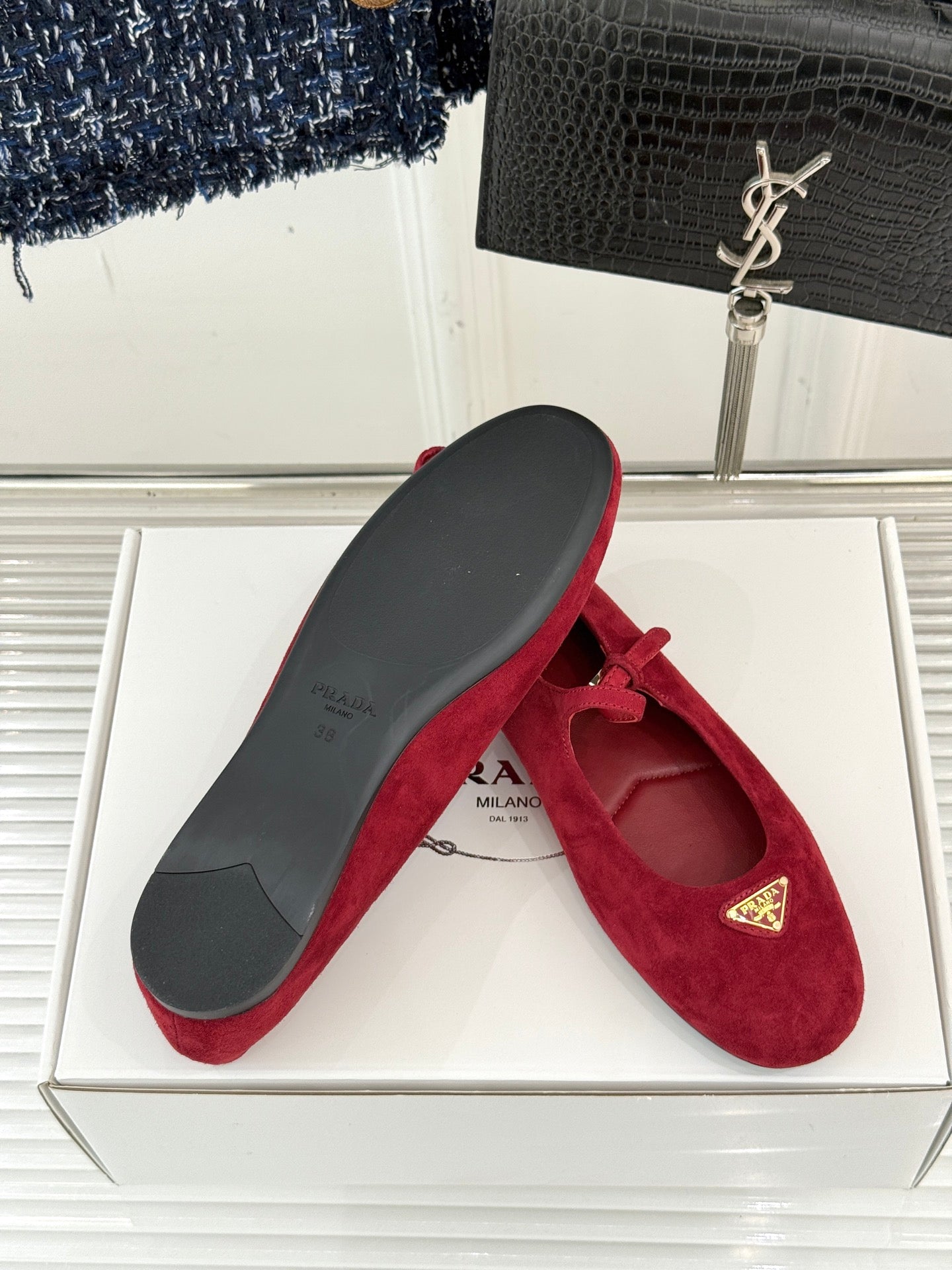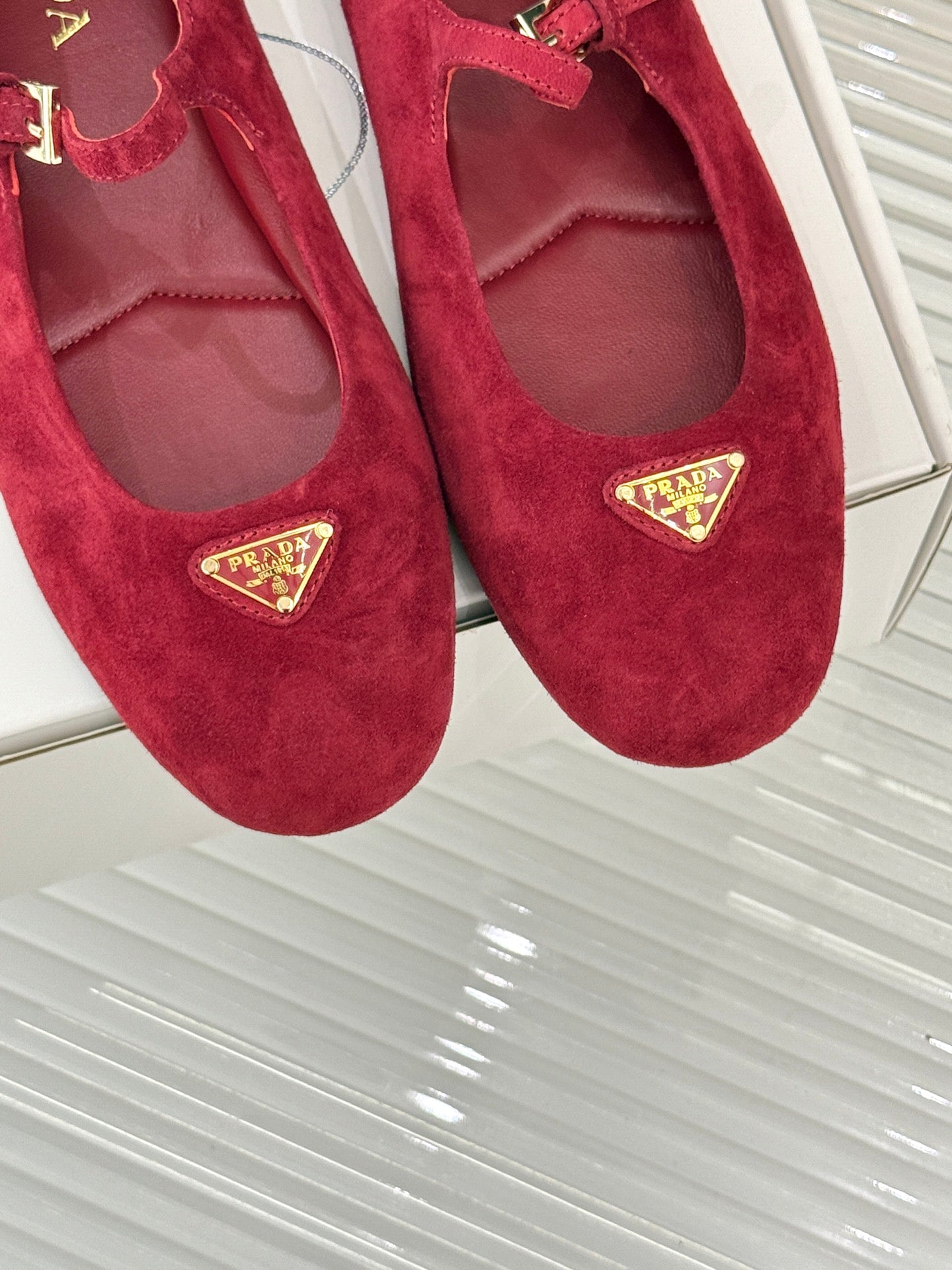 PRADA 25S SOFT PADDED BALLERINAS IN DARK RED SUEDE
