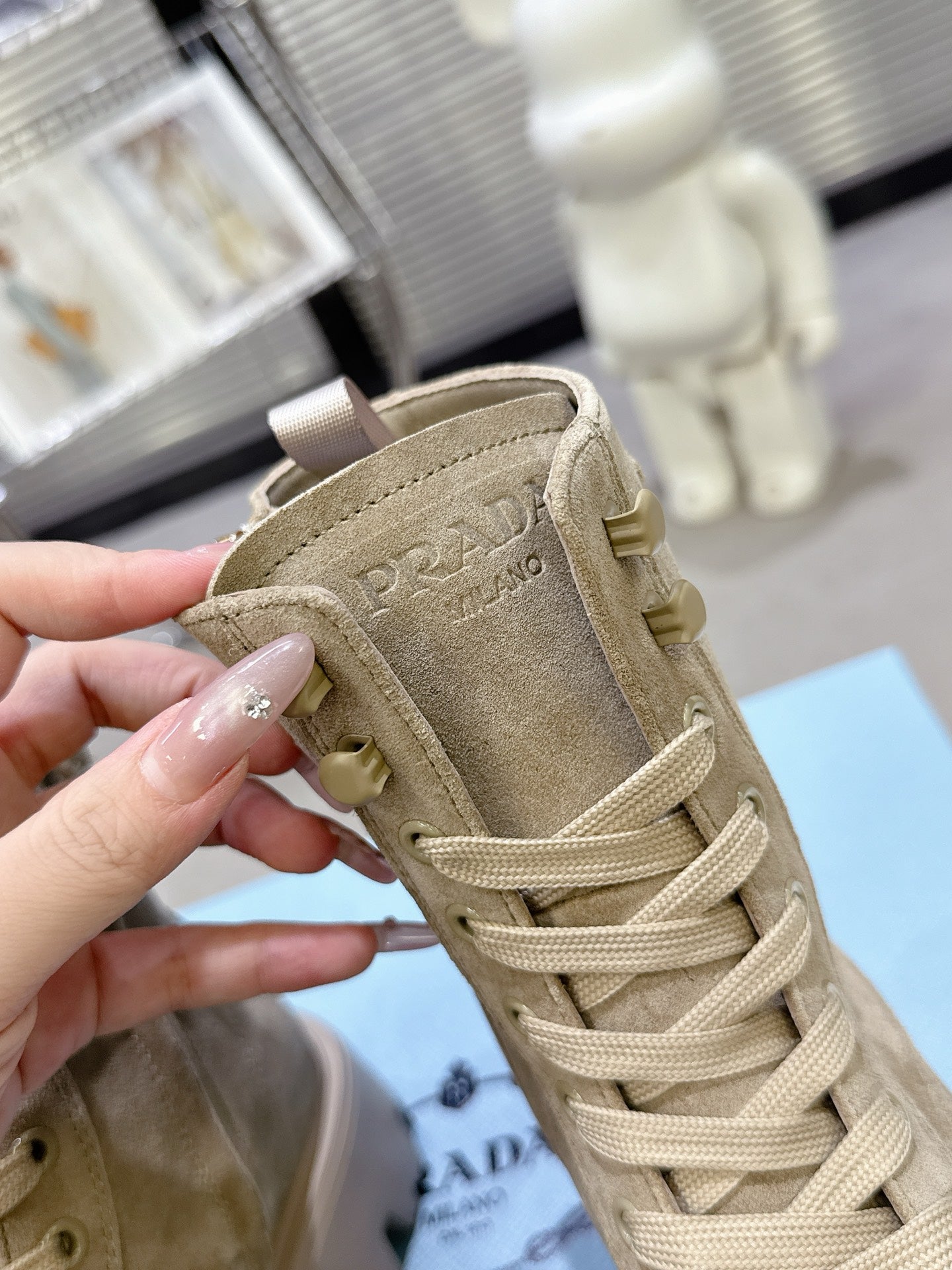 PRADA 25S WARRIOR BOOTS IN BEIGE SUEDE
