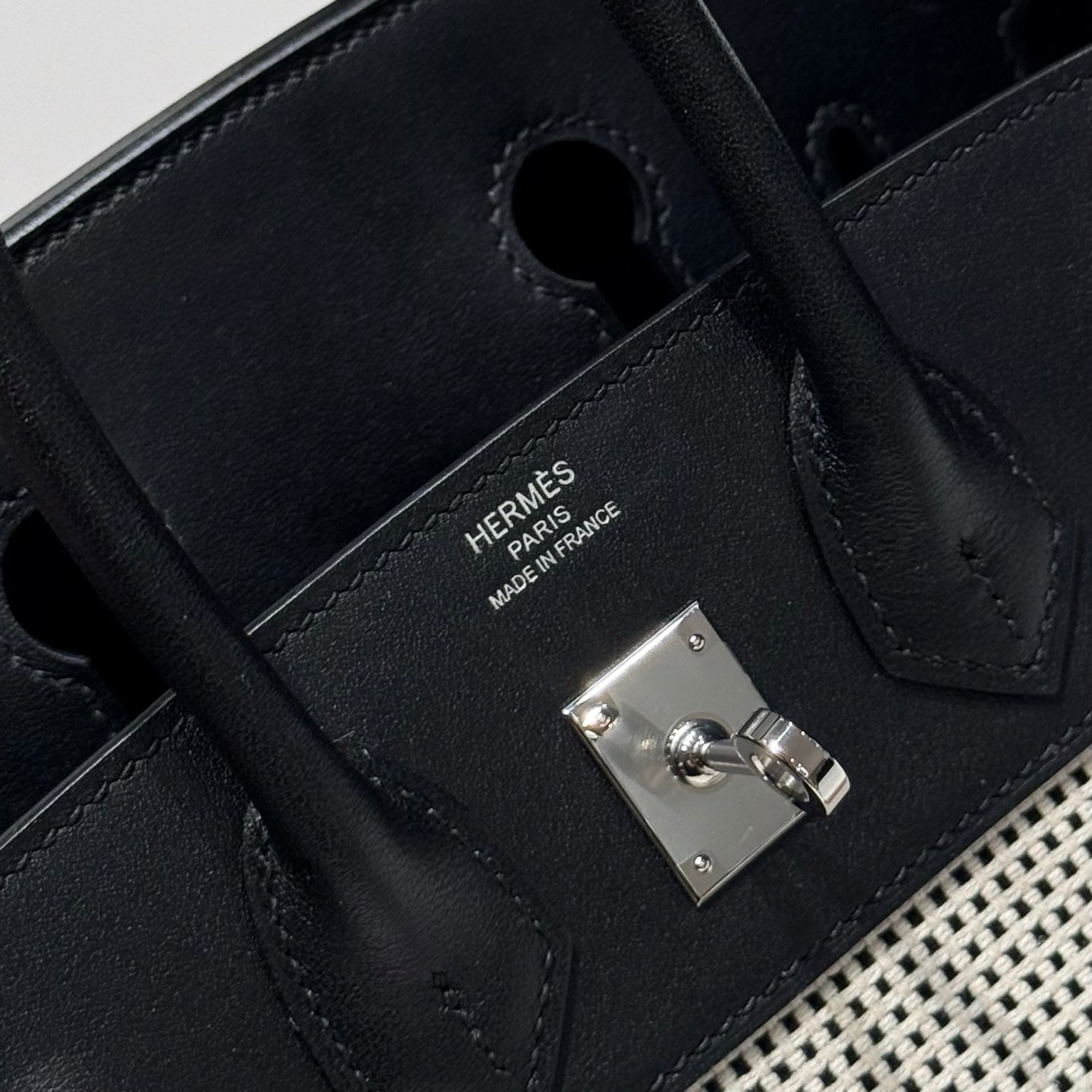 QUADRILLE BIRKIN 25CM IN BLACK SWIFT CALFSKIN WHITE BLACK PLAID TOILE CANVAS