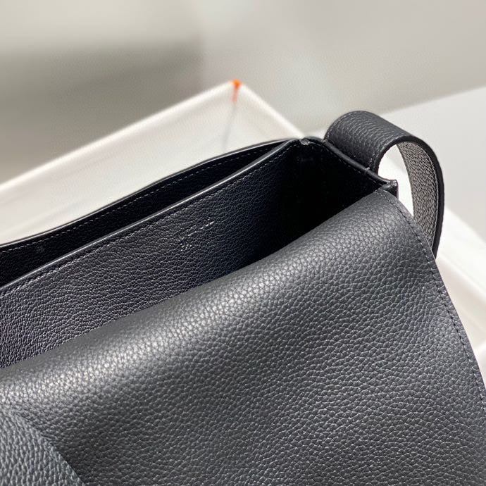 STEVE LIGHT JUNIOR MESSENGER BAG 27 IN BLACK TOGO CALFSKIN