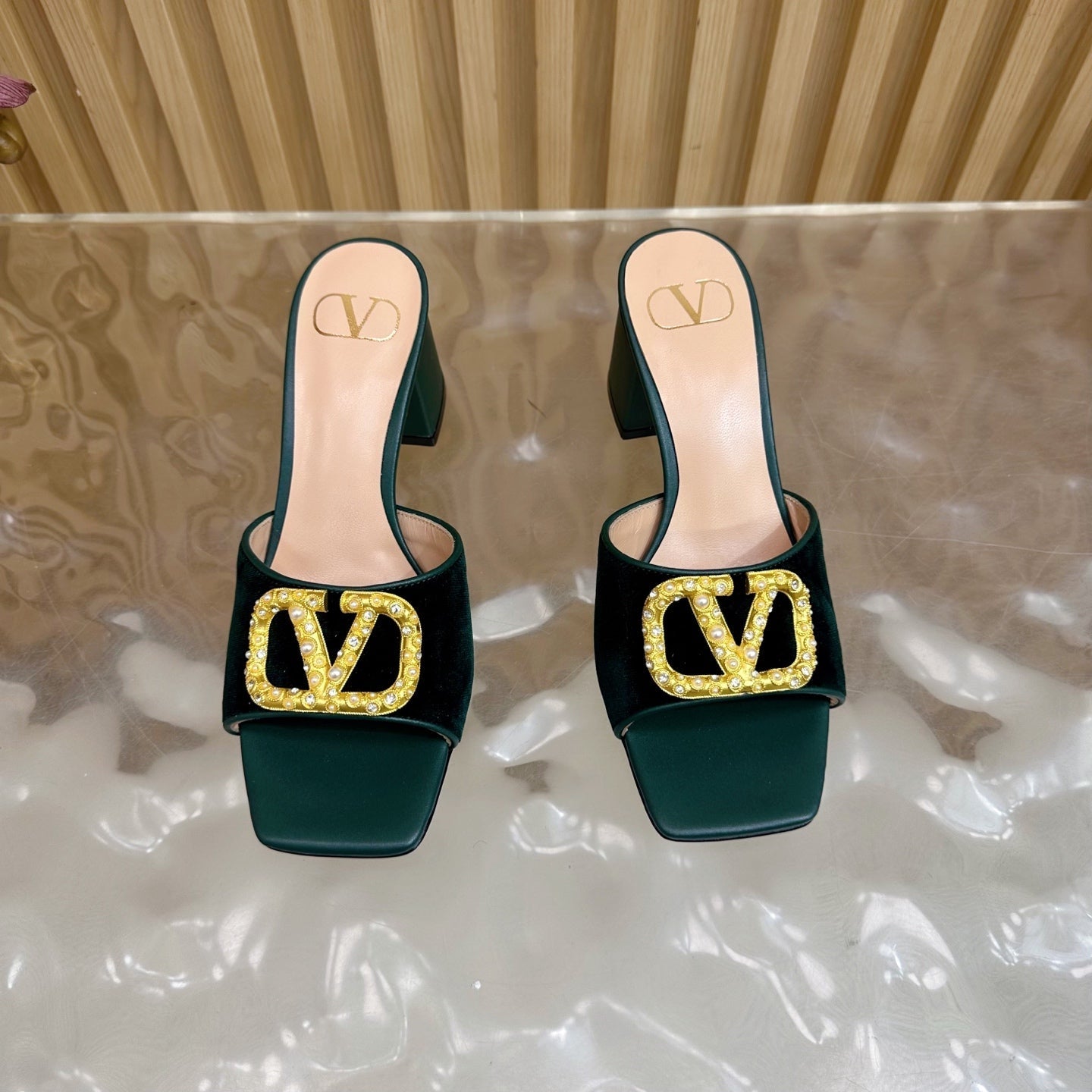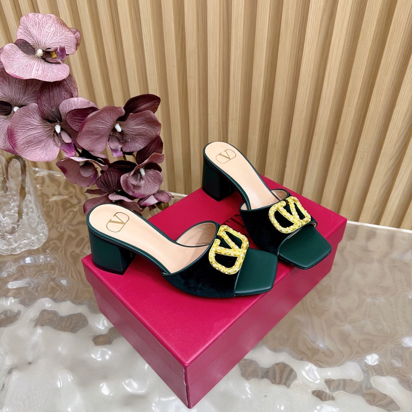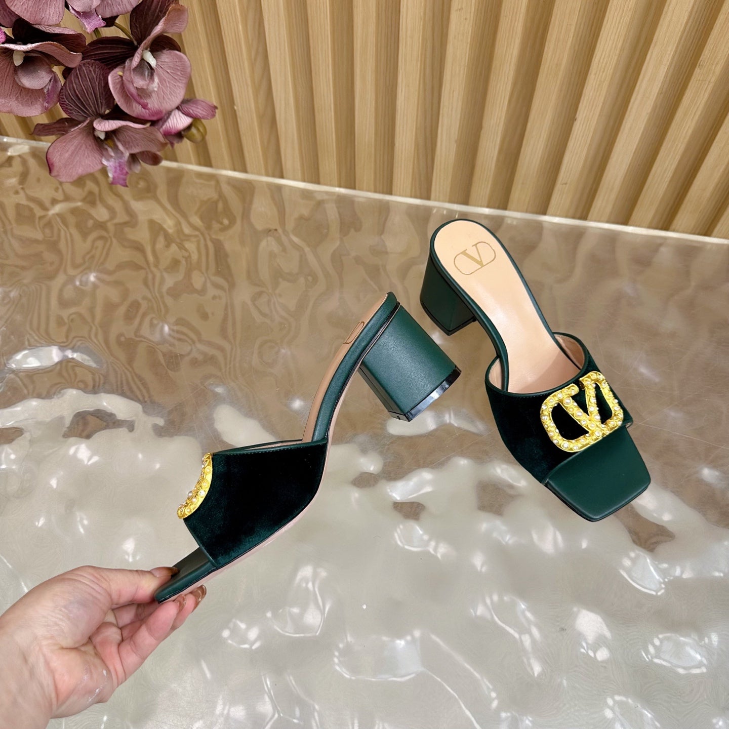 VALENTINO 25S HIGH-HEEL MULES 60 MM IN DARK GREEN VELVET AND CALFSKIN WITH GOLD HARDWARE