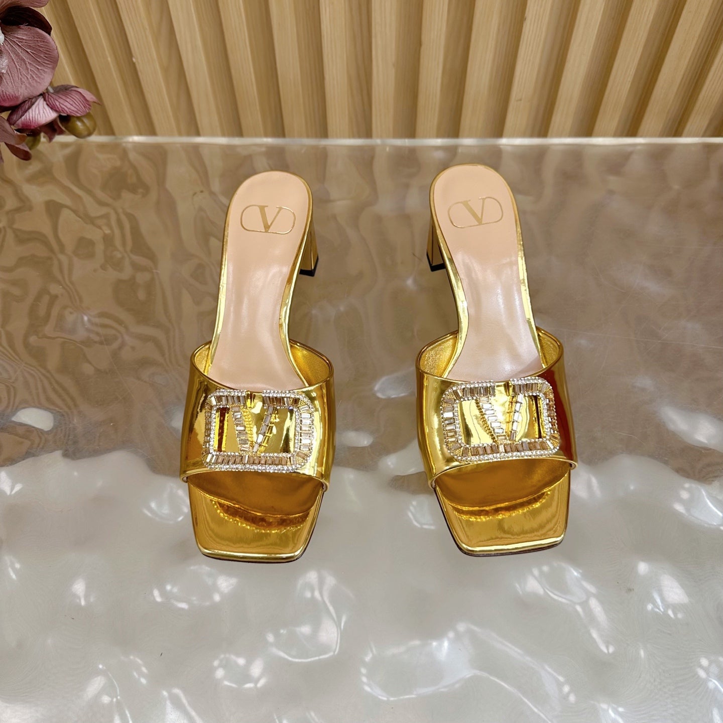 VALENTINO 25S HIGH-HEEL MULES 60 MM IN GOLD PATENT CALFSKIN WITH CRYSTAL-EMBELLISHED STRAP