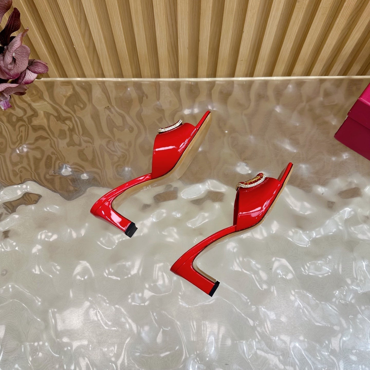 VALENTINO 25S HIGH-HEEL MULES 60 MM IN RED PATENT CALFSKIN WITH CRYSTAL-EMBELLISHED STRAP