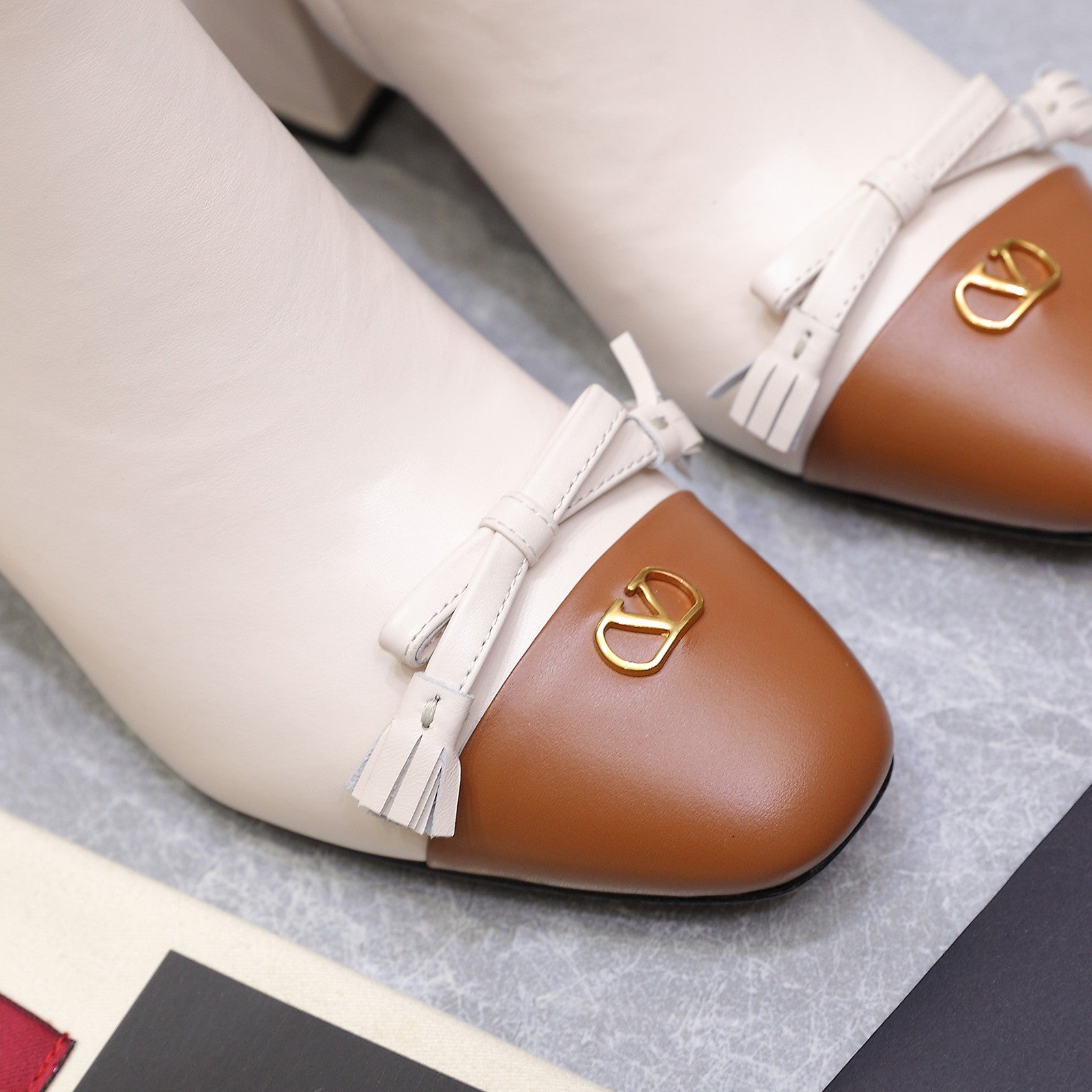 VALENTINO 25S VALET DU ROI ANKLE BOOTS 60 MM IN CREAM WHITE MIX BROWN CALFSKIN WITH BOW