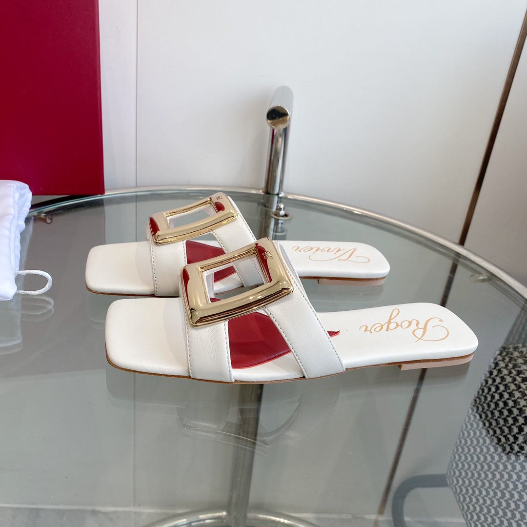 VIV' BY THE SEA LOVE METAL MULES IN WHITE CALFSKIN GOLD BUCKLE
