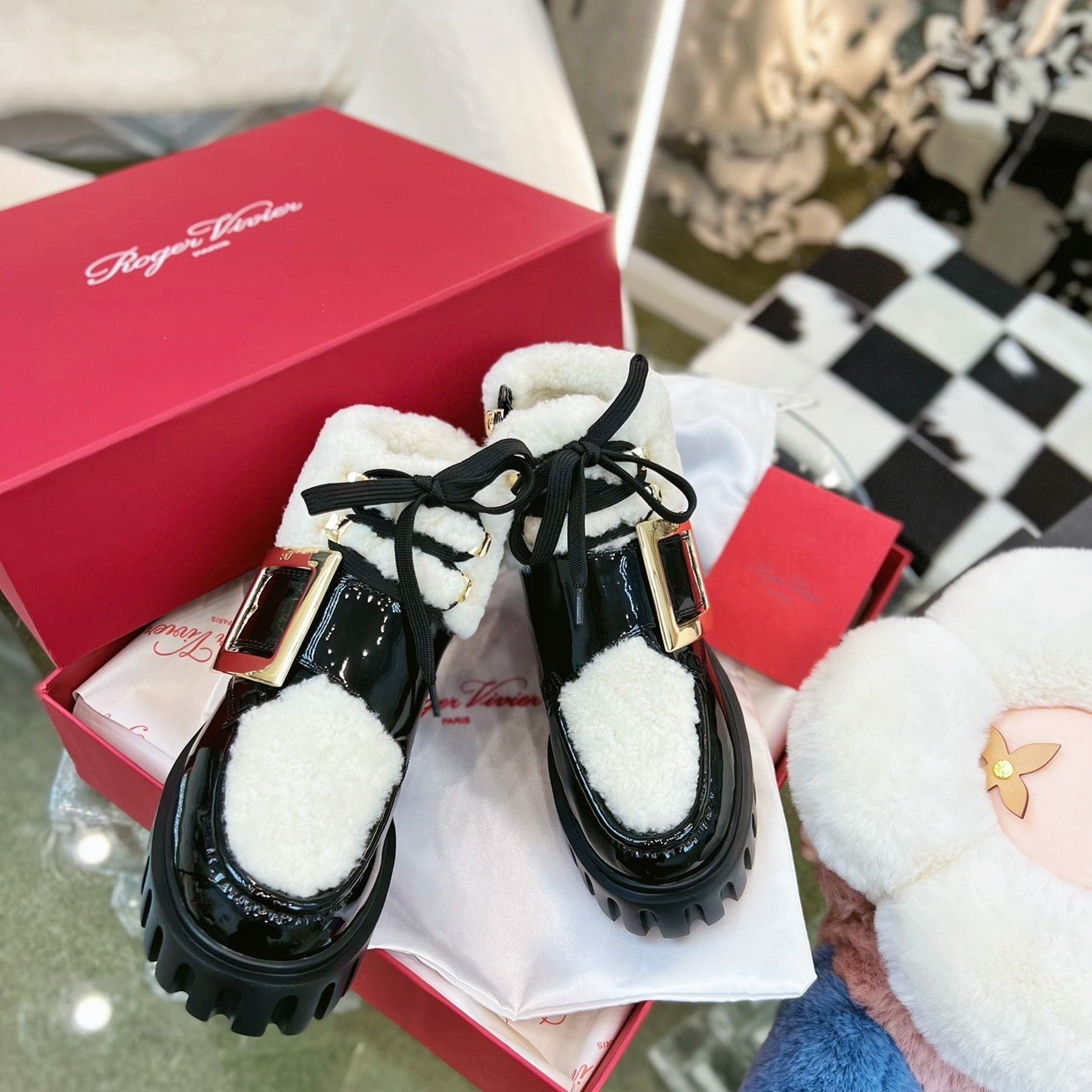 • Material: Calfskin, Shearling