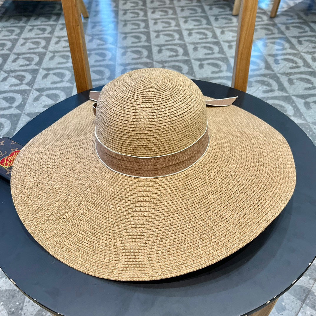 WIDE BRIM STRAW HAT WITH BOW BROWN 672705